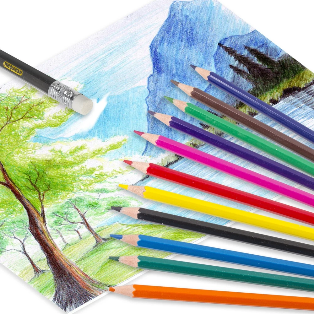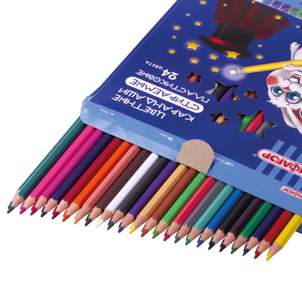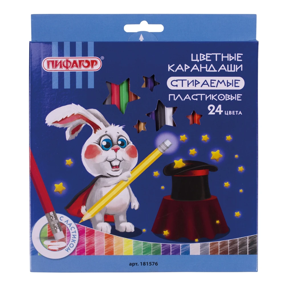 Набор цветных карандашей Пифагор Магия, 24 цвета, стираемые, с ластиком