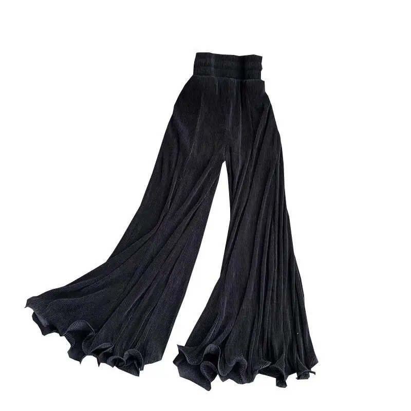 2021 плиссированные брюки с высокой талией, женские тонкие простые свободные расклешенные брюки, женские брюки, черные, темно-синие длинные брюки с широкими штанинами