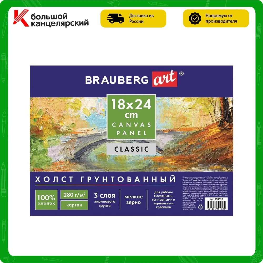 Грунтованный холст на картоне BRAUBERG ART "CLASSIC" используется для работы масляными, темперными и акриловыми красками.