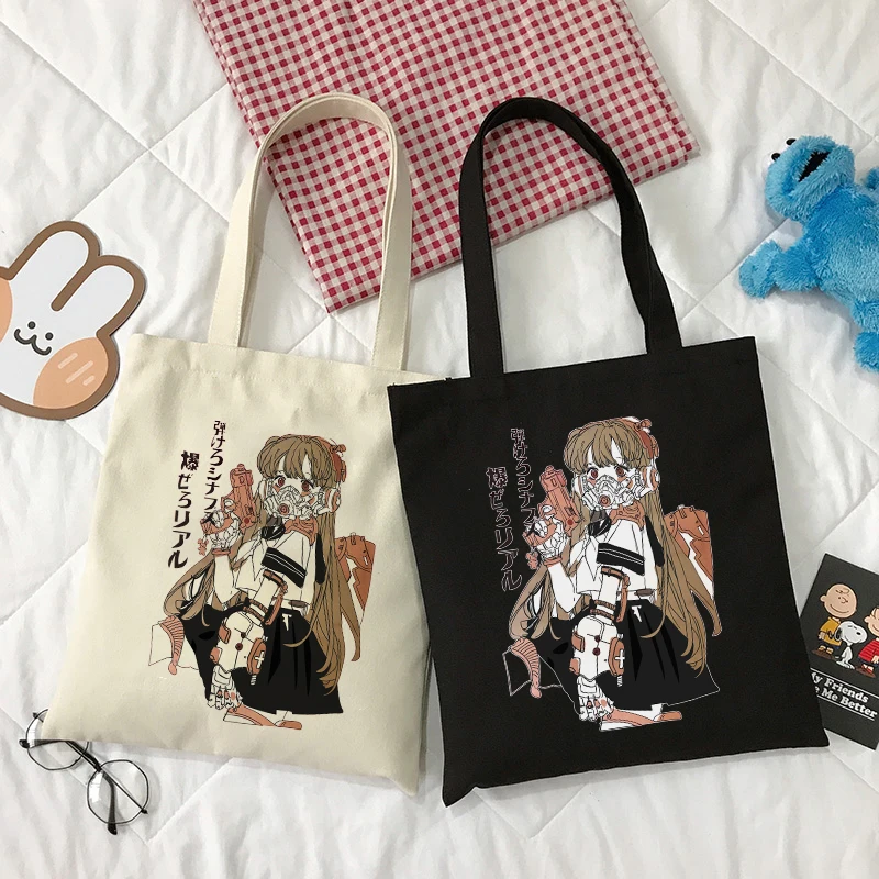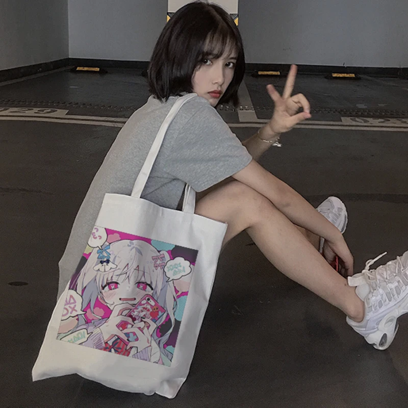 Холщовая Сумка в японском стиле аниме для женщин, повседневная Милая дамская сумочка большой вместимости в стиле Харадзюку с надписью, мешок для покупок в стиле улззанг, y2k
