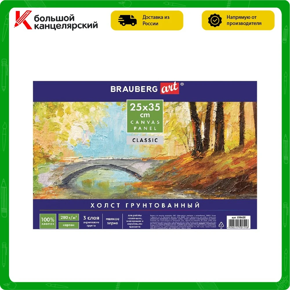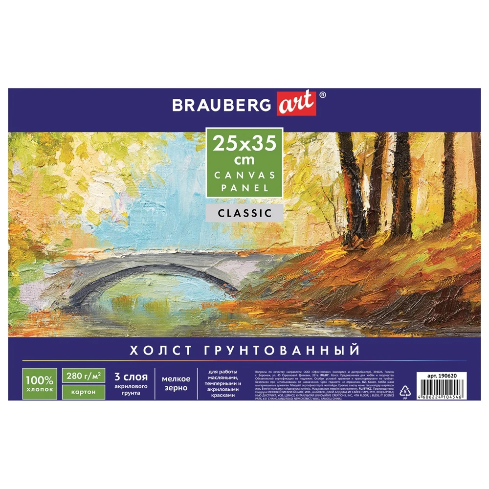 Холст на картоне Brauberg Art Classic, 25х35 см, грунтованный, 100% хлопок, мелкое зерно, 190620