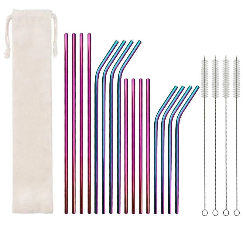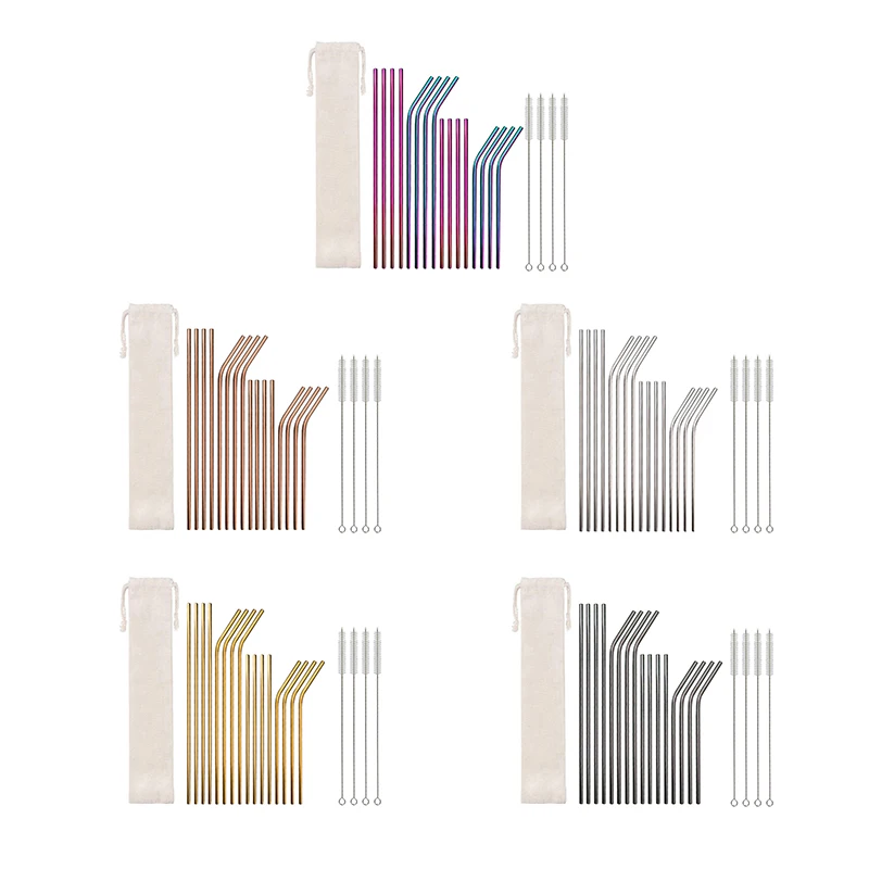 Металлическая многоразовая пивная соломенная Нержавеющаясталь прямой изогнутая соломинка комплект металлические цветные Соломки с чистящая щетка вечерние бар питания