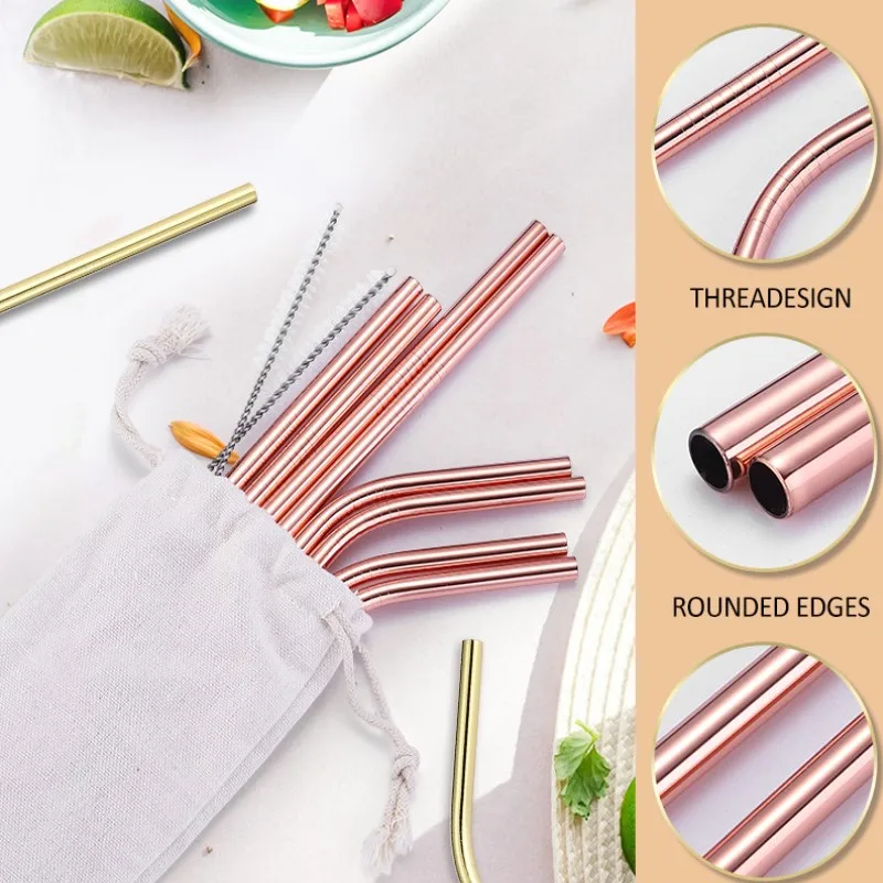 Солома изготовлена из нержавеющей стали 304, которая не токсична, безвкусна, устойчива к коррозии, не ржавеет и не имеет металлического привкуса, который является здоровым и безопасным. Подходит для напитков, чая, соков и т. д. безопасная, многоразовая и экологически чистая посудомоечная машина.