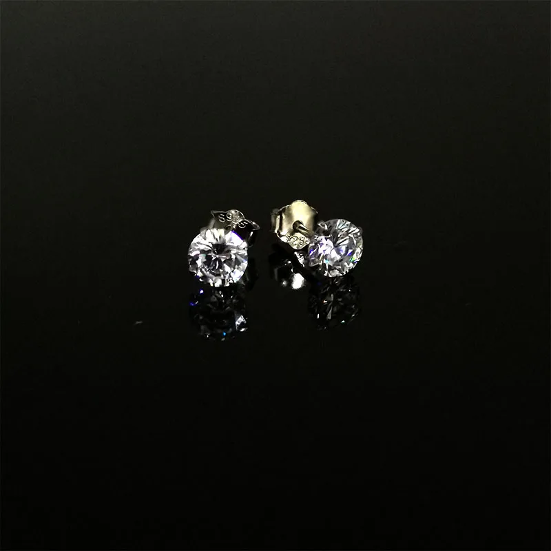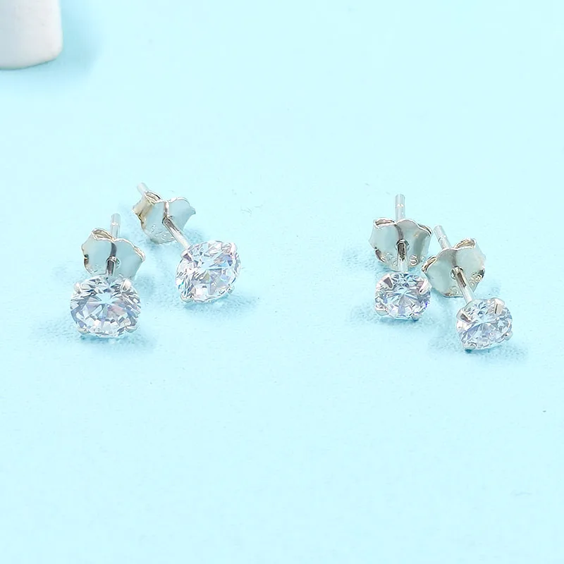 Реальные 925 пробы серебро Ясно CZ маленькие серьги-гвоздики для Тканные Ювелирное Украшение, 3 мм, 4 мм, 5 мм, четыре когти циркон серьги-пуссеты