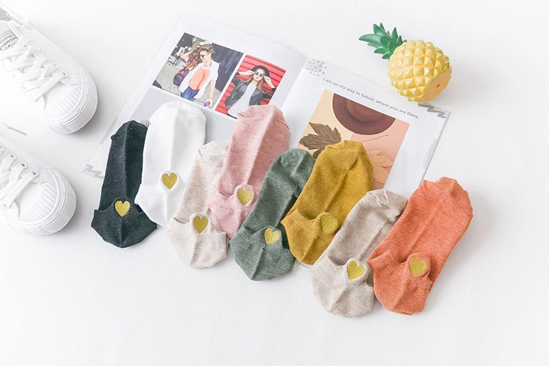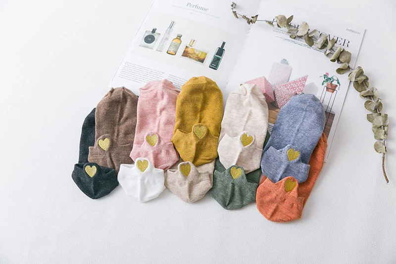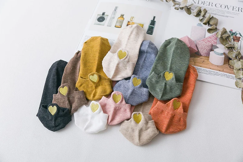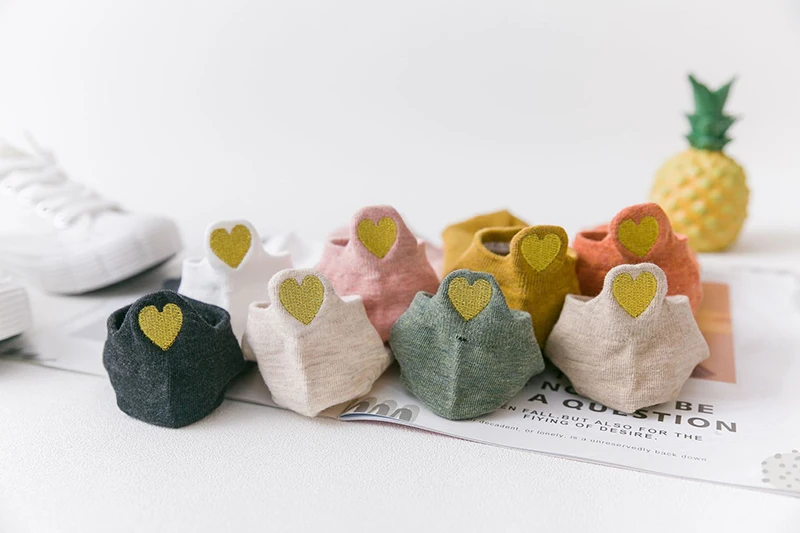 Новинка, детские летние носки женские хлопковые носки для девочек короткие носочки по щиколотку Тапочки с вышивкой в виде сердца, 5 парпартия