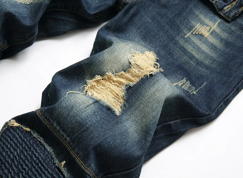 Джинсы с рваными дырками, мото байка, прямые джинсы для мужчин, бол...