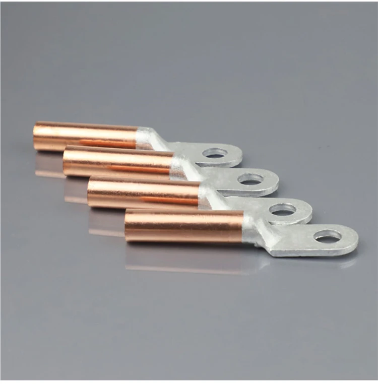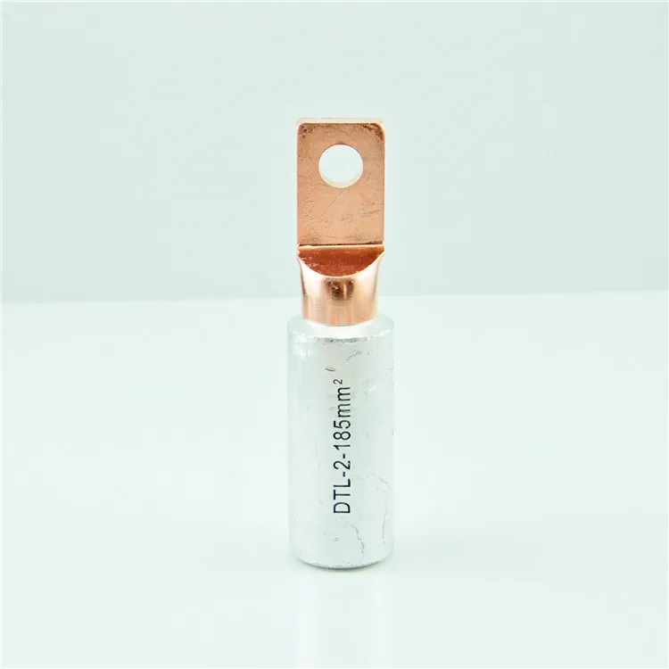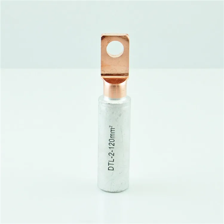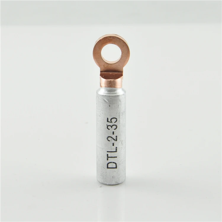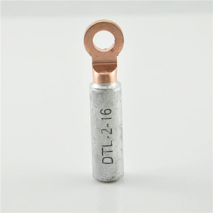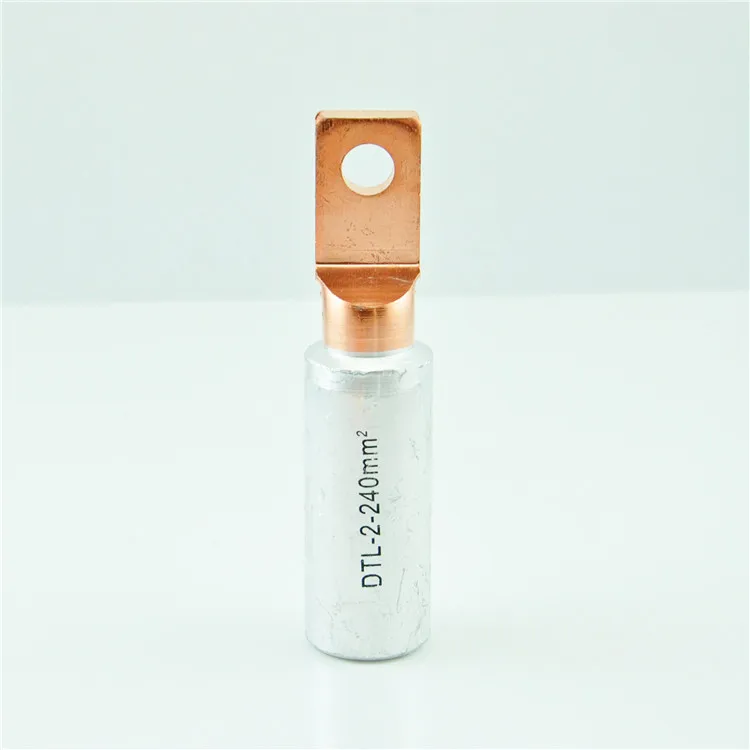 Медно-алюминиевые клеммные блоки серии DTL подходят для переходных соединений различных круглых и полукруглых вентиляторных алюминиевых проводов, силовых кабелей и медных концов электрического оборудования в устройствах распределения электроэнергии. Используемый алюминиевый материал L3, медный материал T2. Продукт изготовлен по технологии фрикционной сварки, которая имеет характеристики высокой прочности сварочного шва, хорошие электрические характеристики, устойчивость к гальванической коррозии и длительный срок службы.