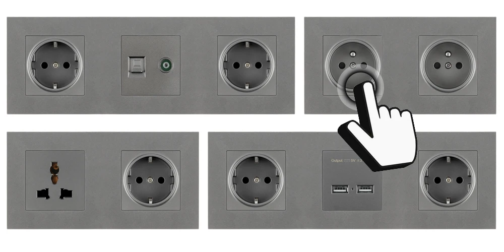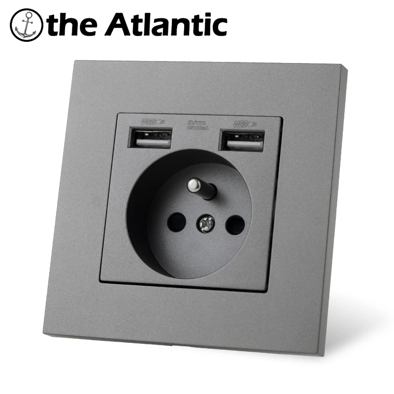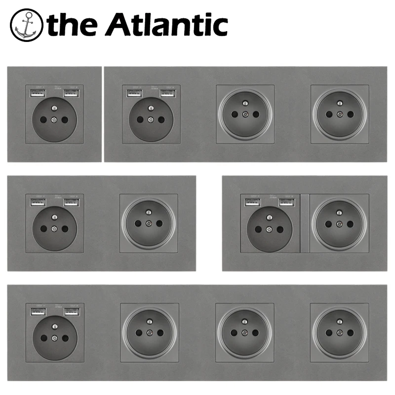 Настенная розетка французская FR для домашней розетки, электрическая розетка, одинарная, двойная, тройная, четверная, серая, серая, USB разъем питания