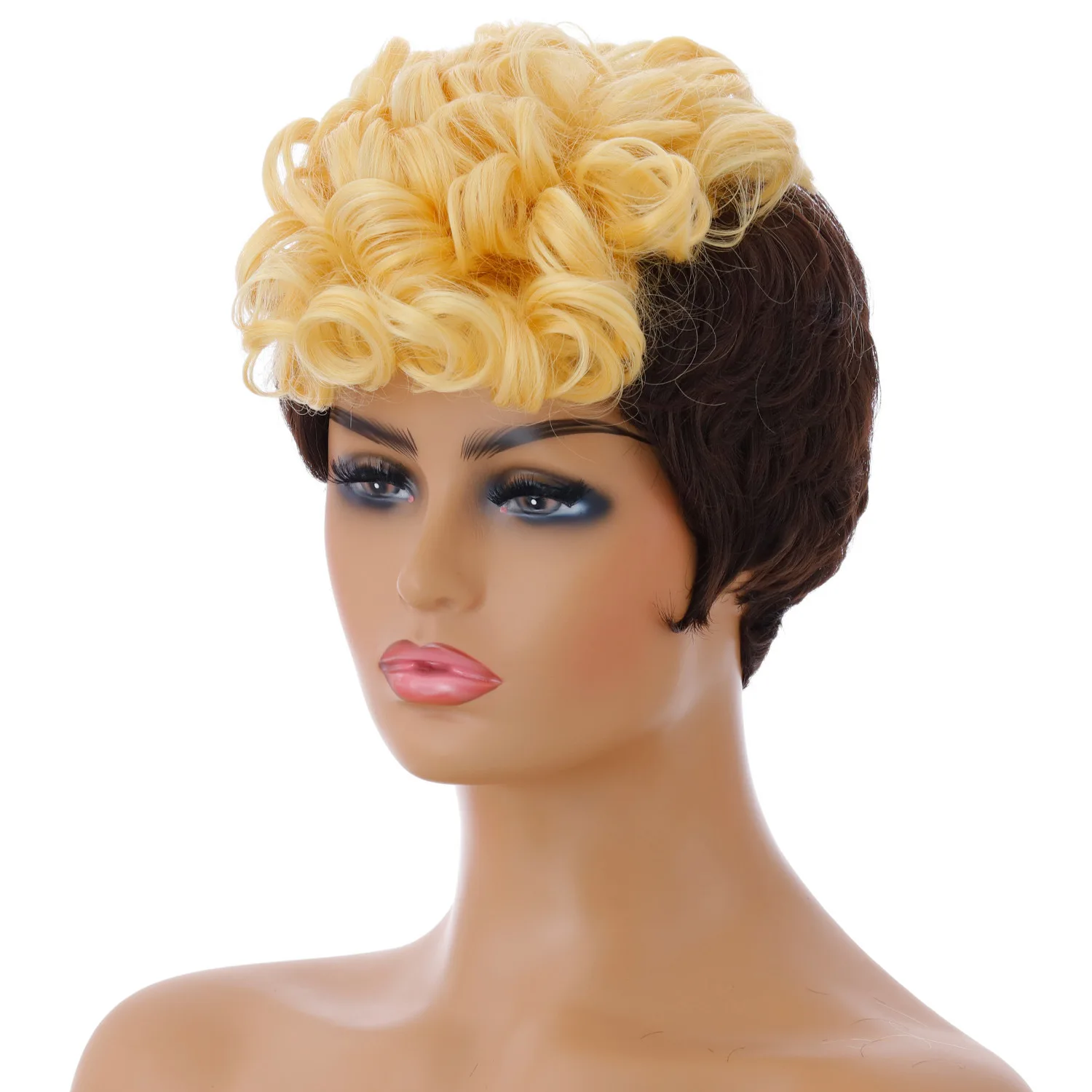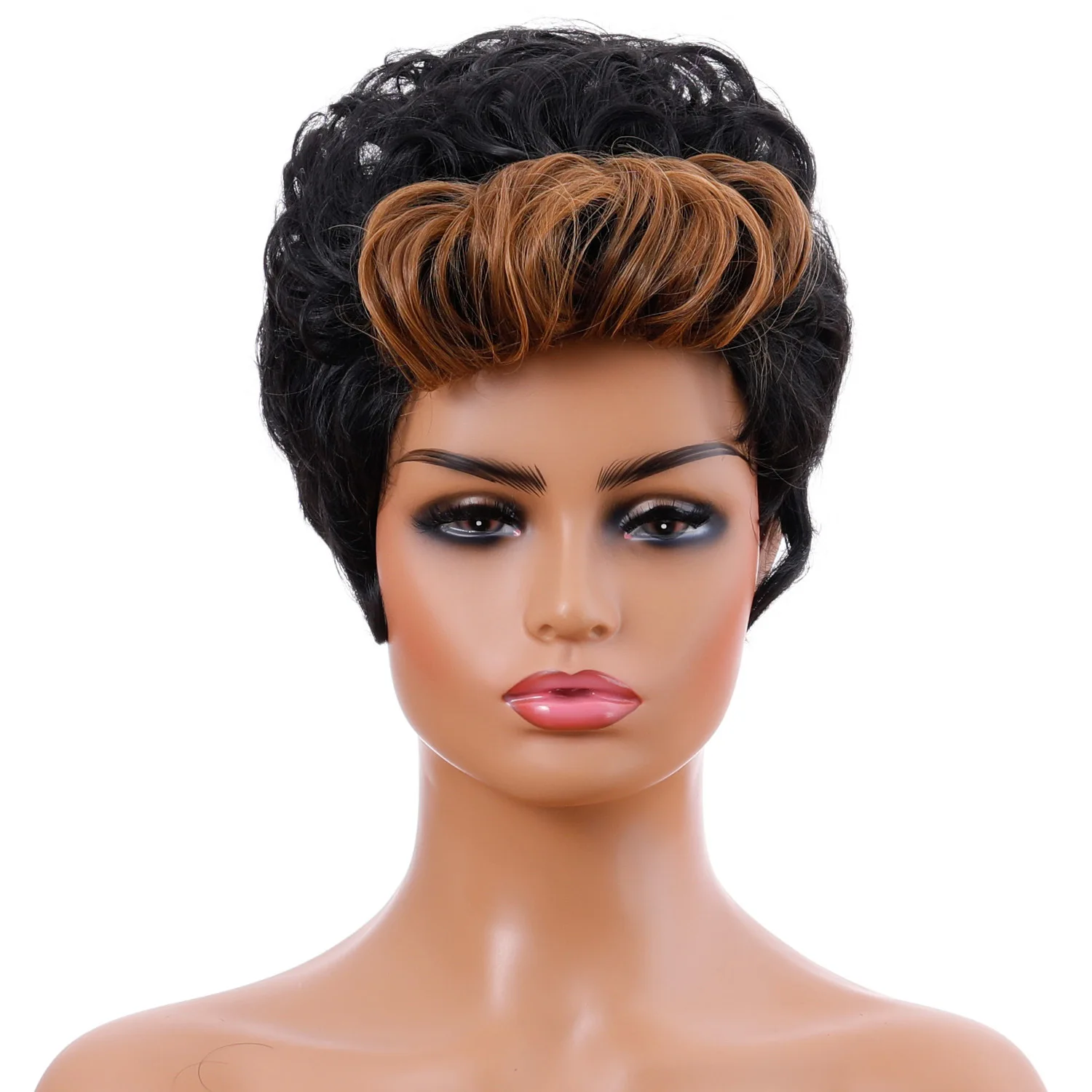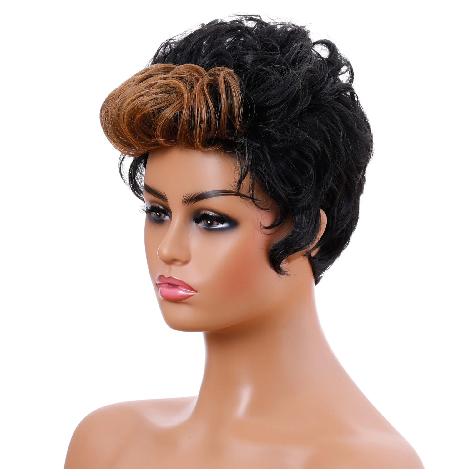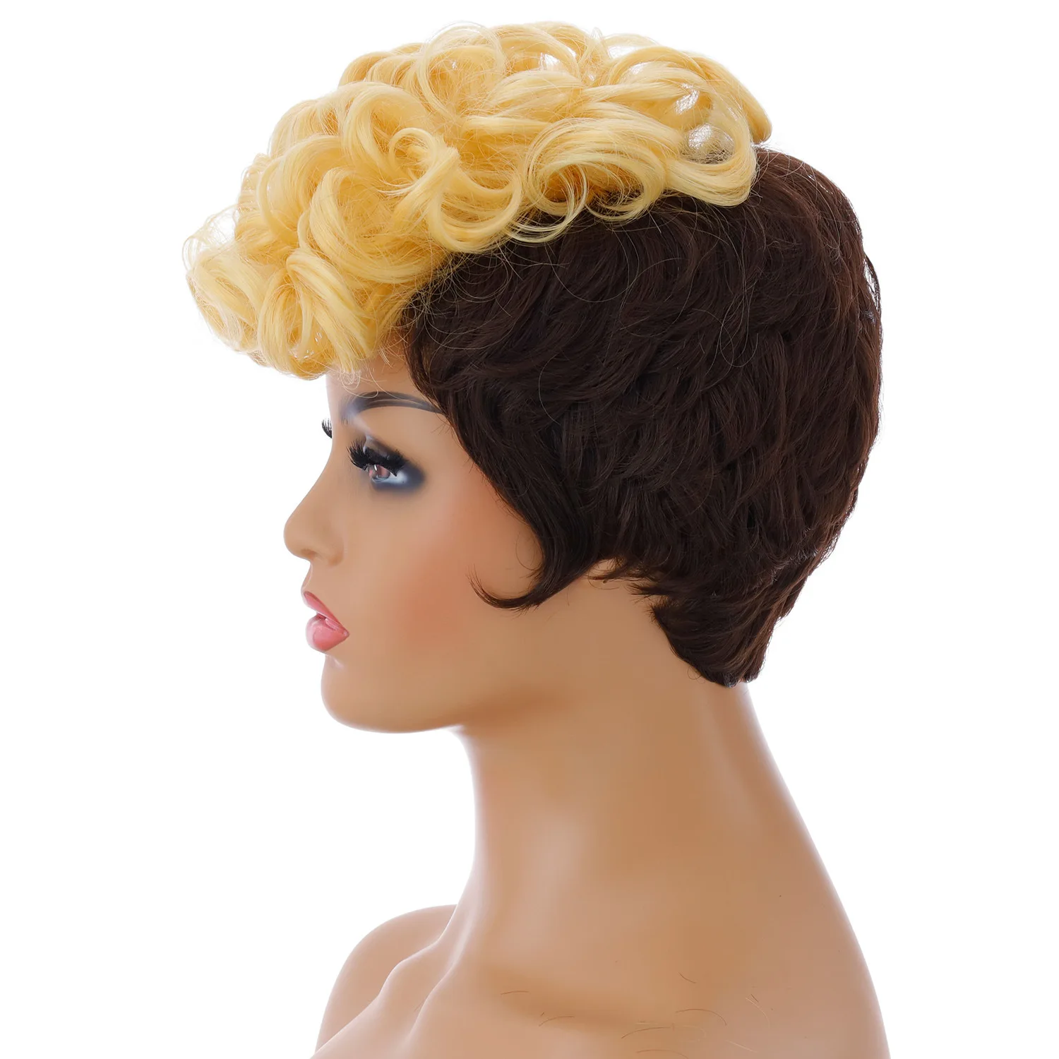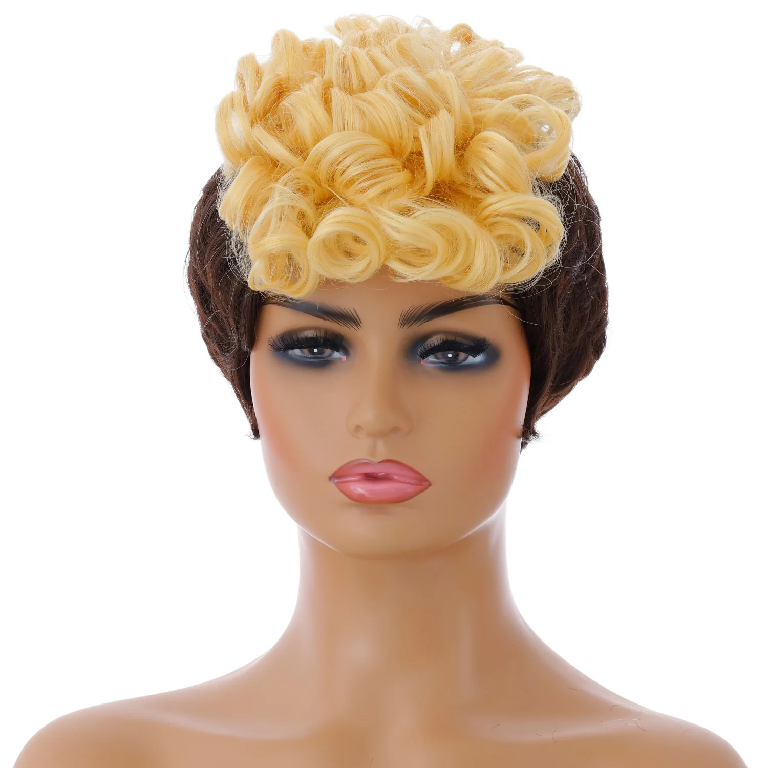 Парики с вырезами фея, синтетические короткие черные, желтые, винные, водные волнистые парики, естественный вид, термостойкий парик для черных женщин