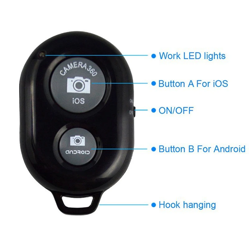 1. Цвет: случайный2. Применение к: iOS (6,0 выше)/системе Android (для Samsung/MOTO/Sony/Google/Xiaomi/HTC и т. д., Android 4.2.2 выше)3. Функциональные клавиши: вкл/выкл, Сопряжение Bluetooth, фотография, конфигурация Android, конфигурация IOS4. Bluetooth: V3.05. Частота: 2,4 Гц-2,48 ГГц6. Эффективное расстояние: 10 м (30 футов)7. Батарея: батарея кнопки CR2032