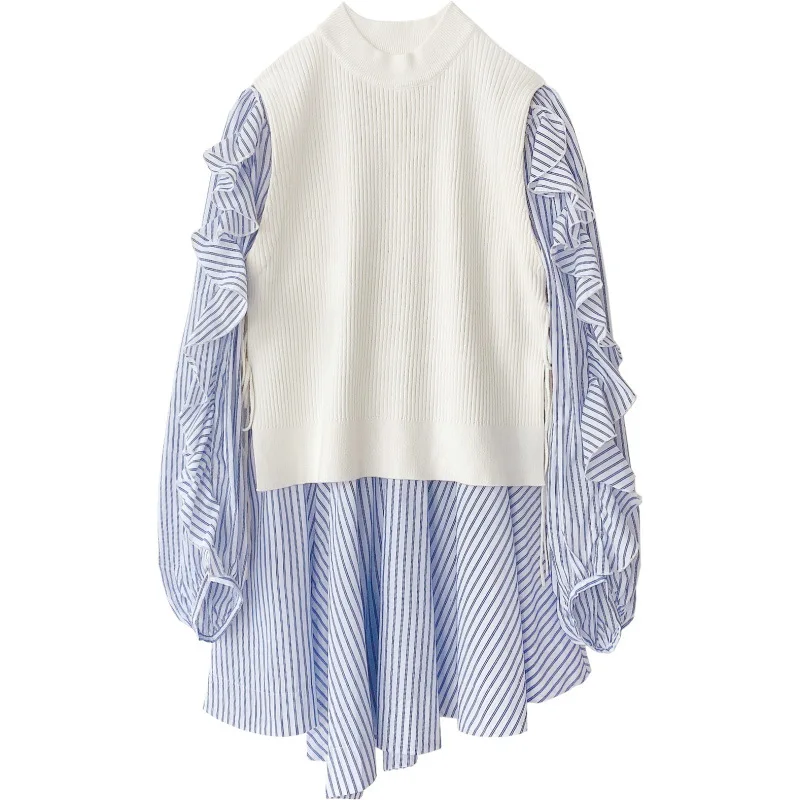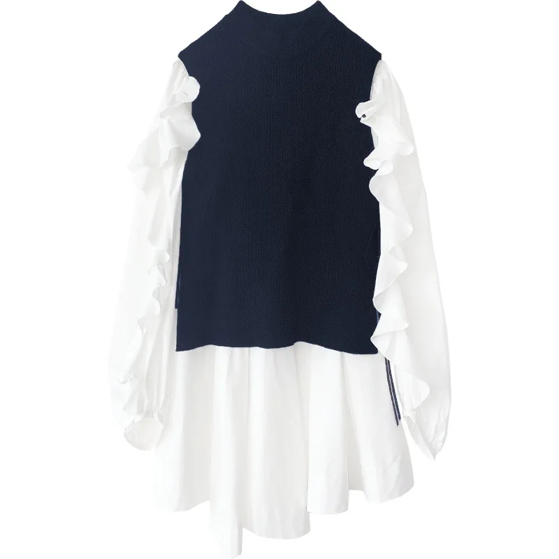 Япония Стиль с длинным рукавом Нерегулярные мини платье деревянных ушей Egde Сладкий Vestidos Mujer + простые однотонные повседневные свободные комплект свитеров для всей семьи
