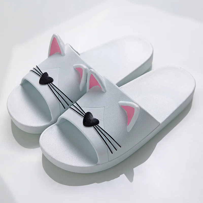 Шлепанцы женские с котом, Симпатичные сандалии в Корейском стиле для душа, Нескользящие, мягкие домашние Тапочки для ванной комнаты, лето