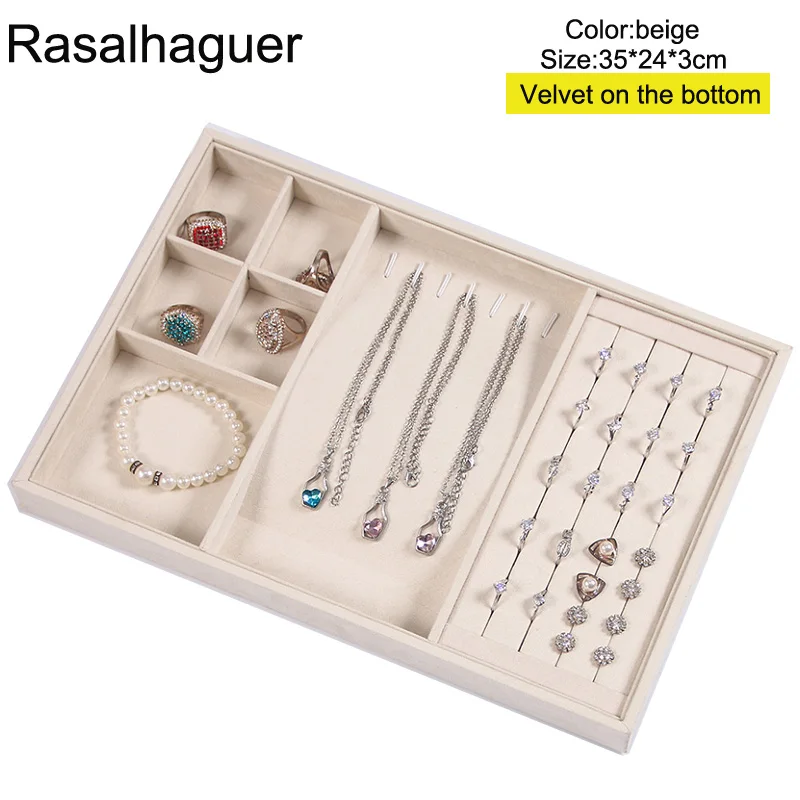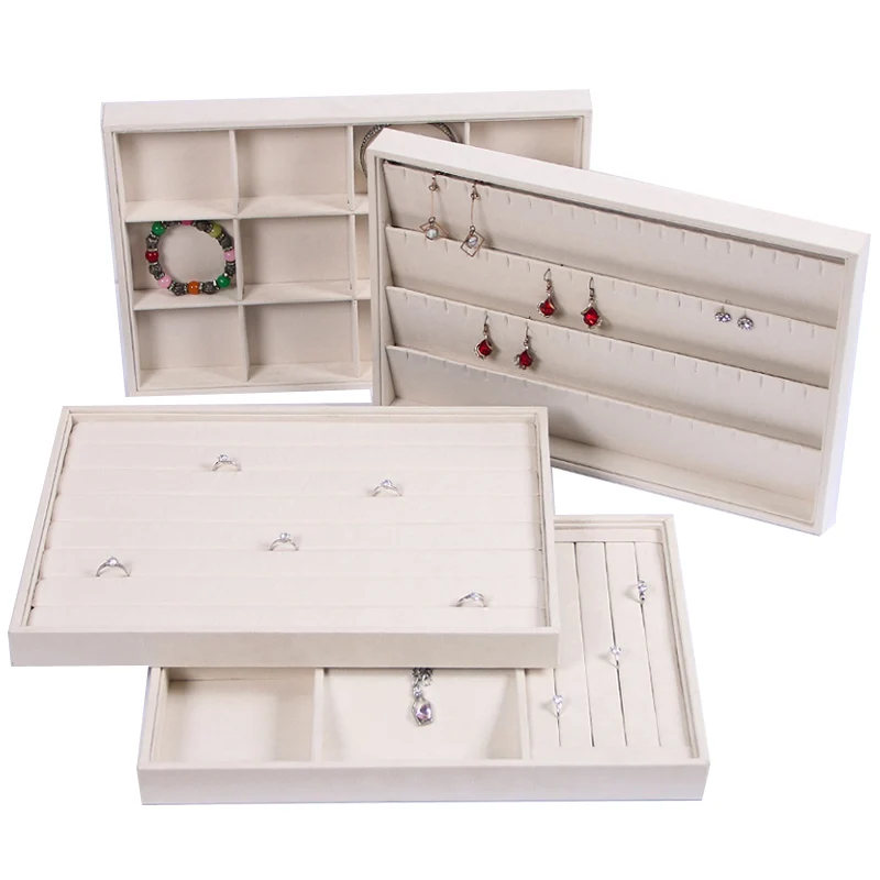 Роскошная бежевая поднос с несколькими дисплеями, нижняя Вельветовая шкатулка для украшений, органайзер для украшений, подарочная упаковка, оптовая продажа