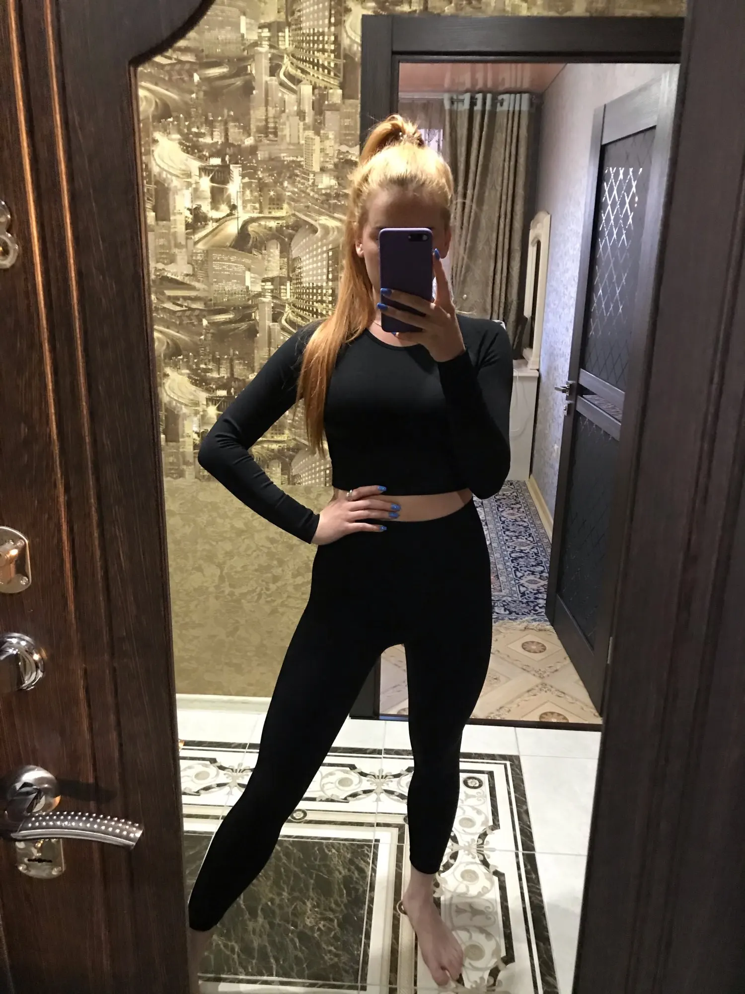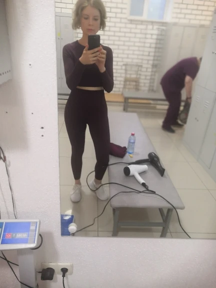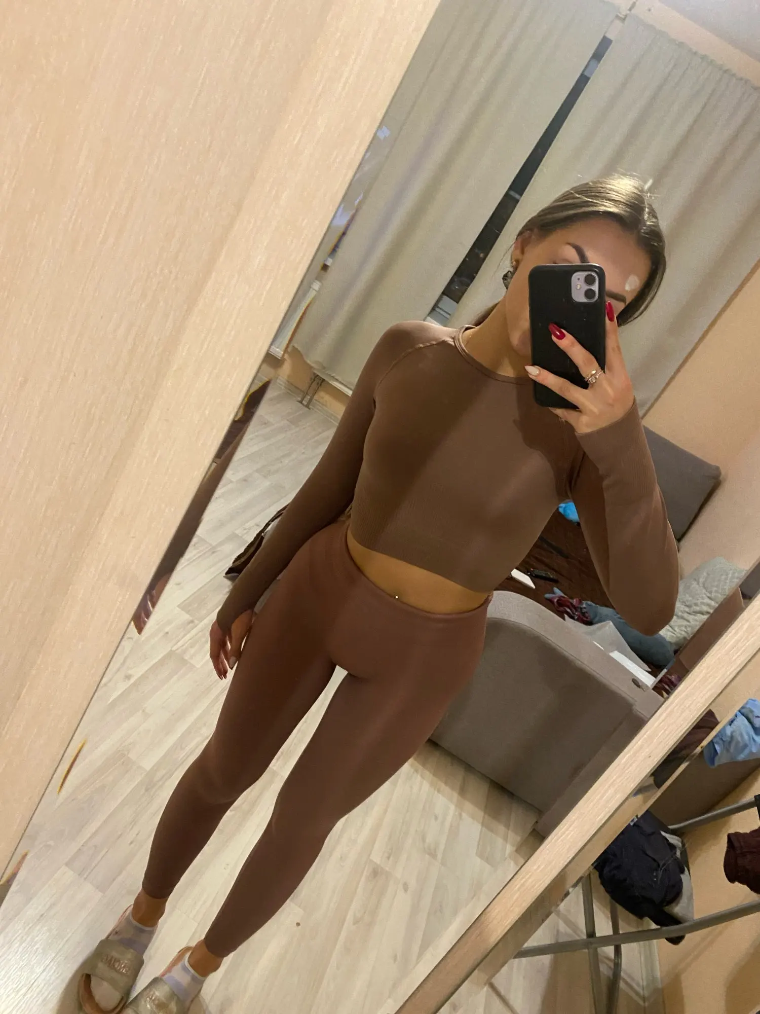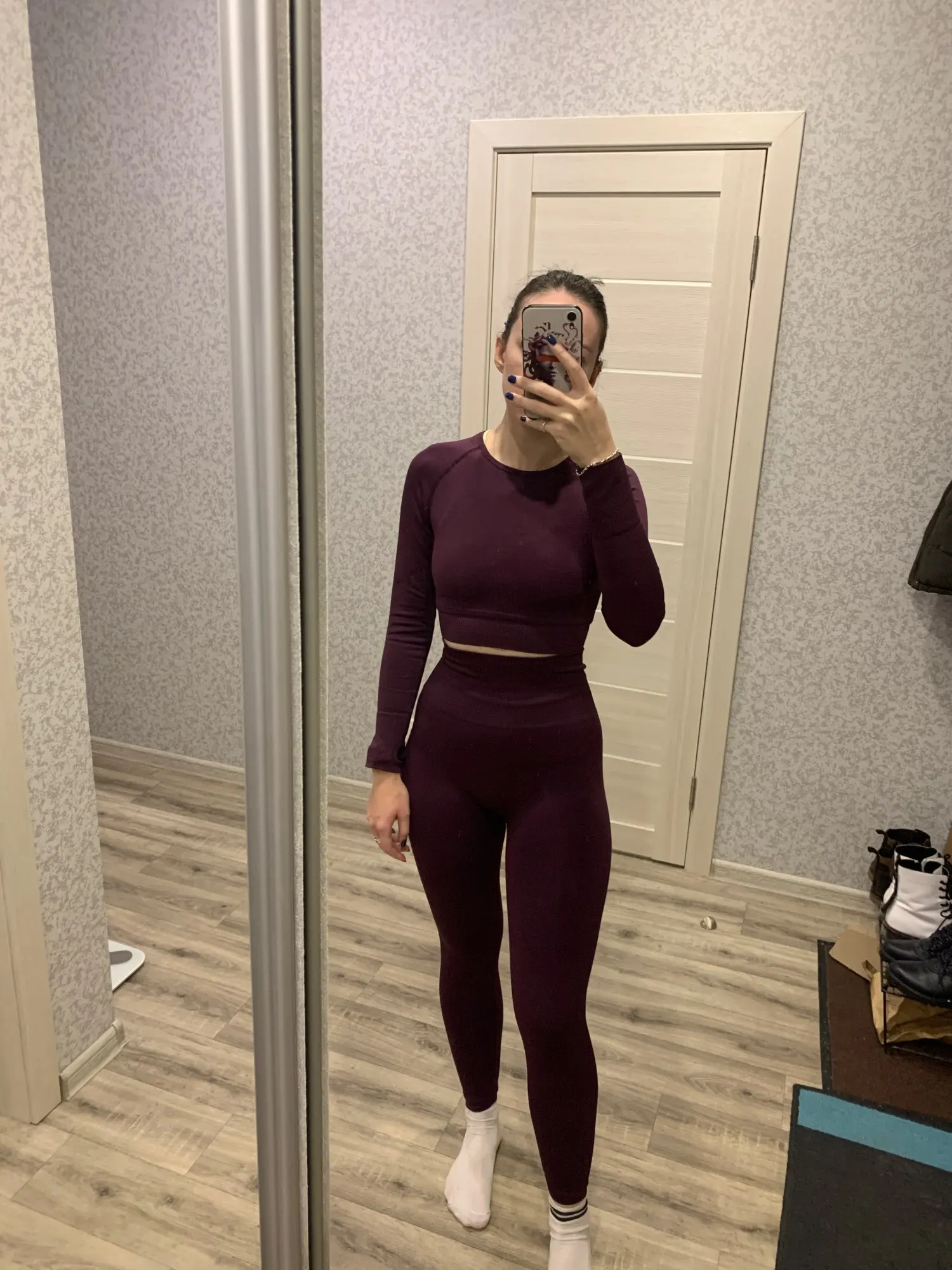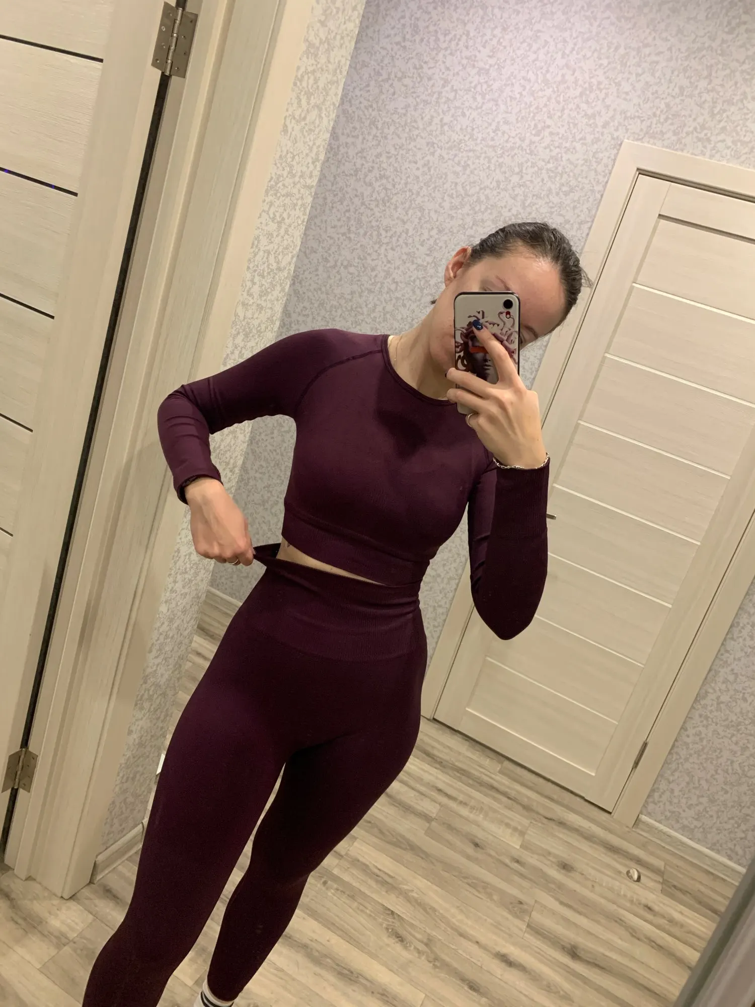 Фантастический набор. Он идеально подходит к телу. Леггинсы имеют высокую талию, поэтому недостатки живота рассеиваются. И он идеально подходит.