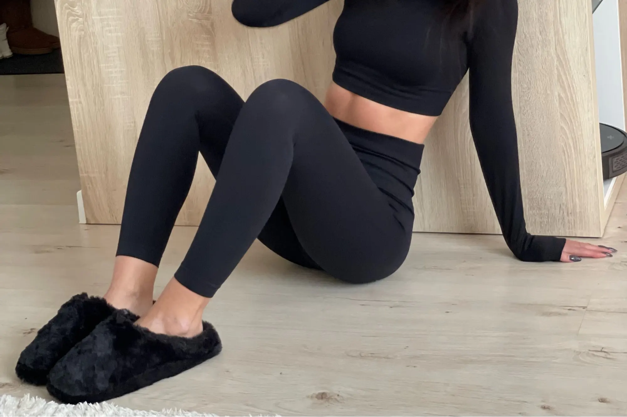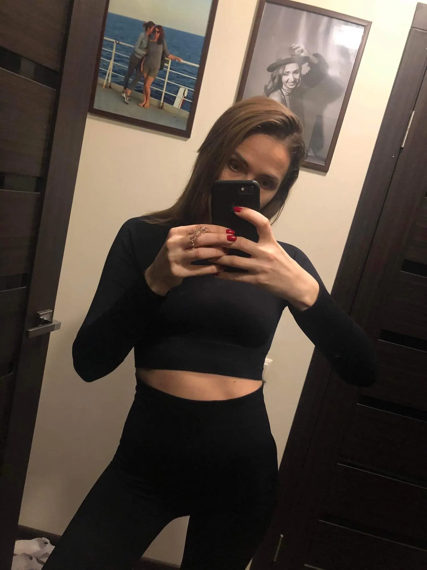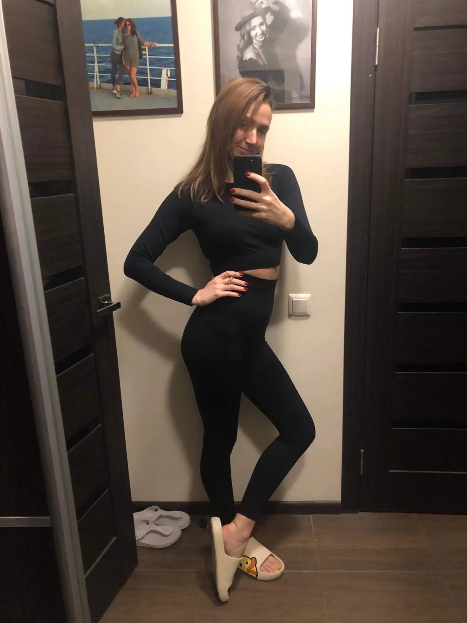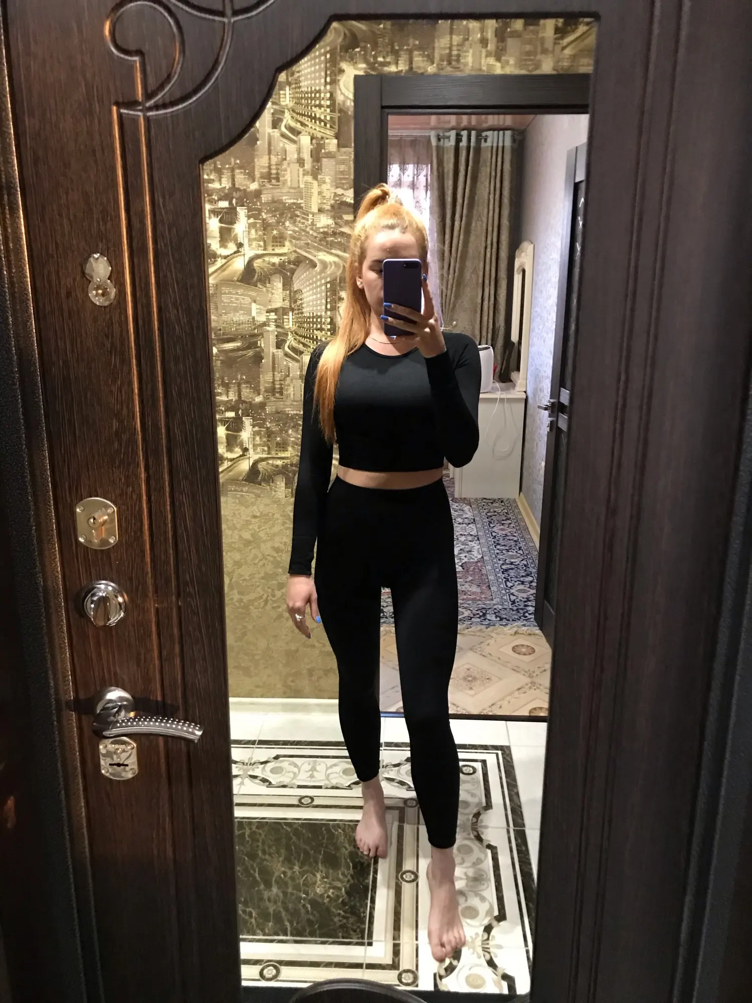 Фантастический набор. Он идеально подходит к телу. Леггинсы имеют высокую талию, поэтому недостатки живота рассеиваются. И он идеально подходит.