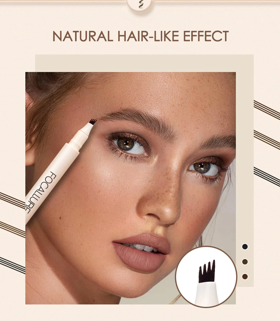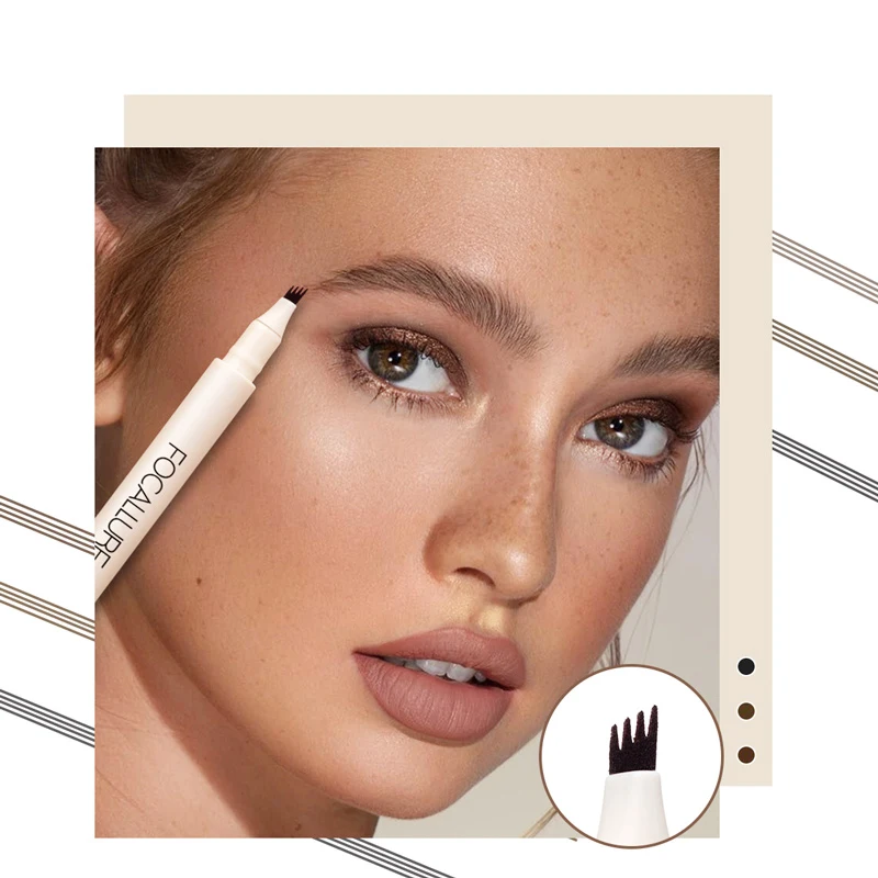 Это жидкий карандаш для бровей с 4 вилками, который идеально подходит всем вашим потребностям, предназначен исключительно для 4 вилочных наконечников, которые обеспечивают естественный вид штрихов, похожих на волосы, могут точно очертить брови, С легкостью создавайте штрихи, напоминающие волосы.