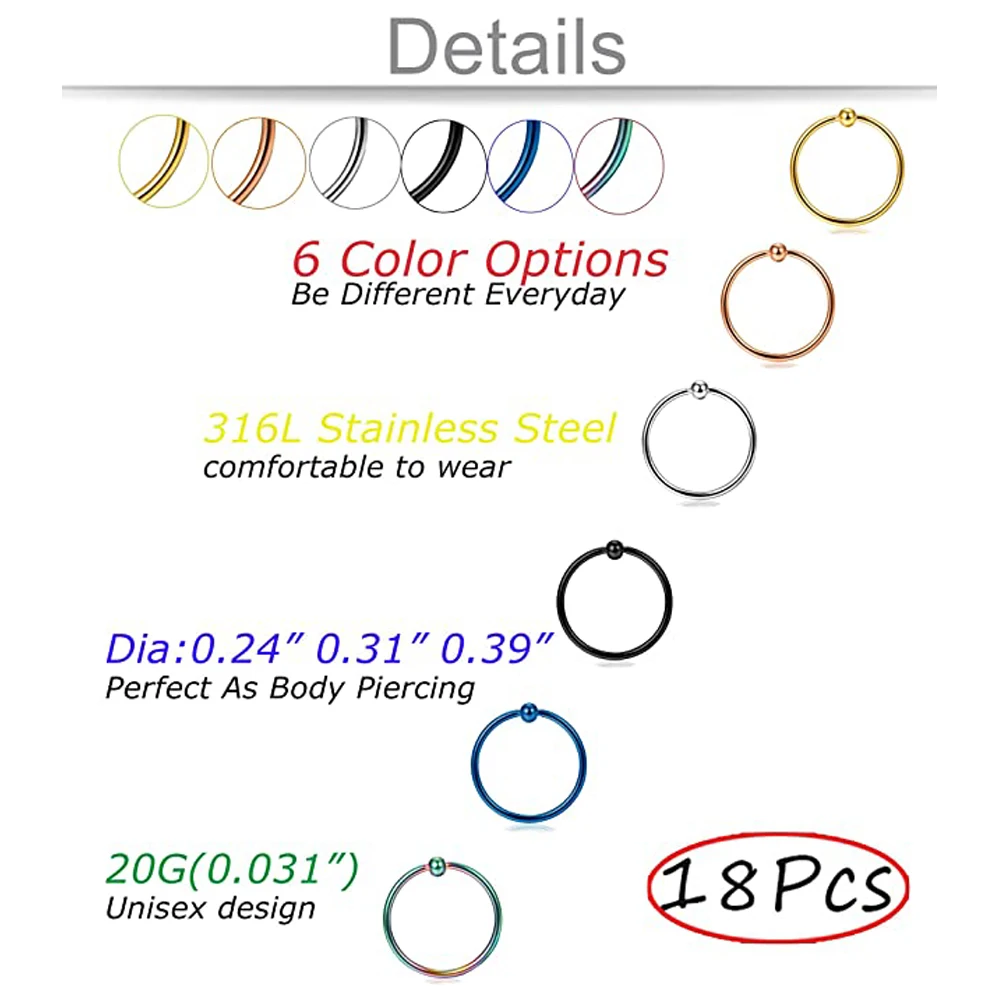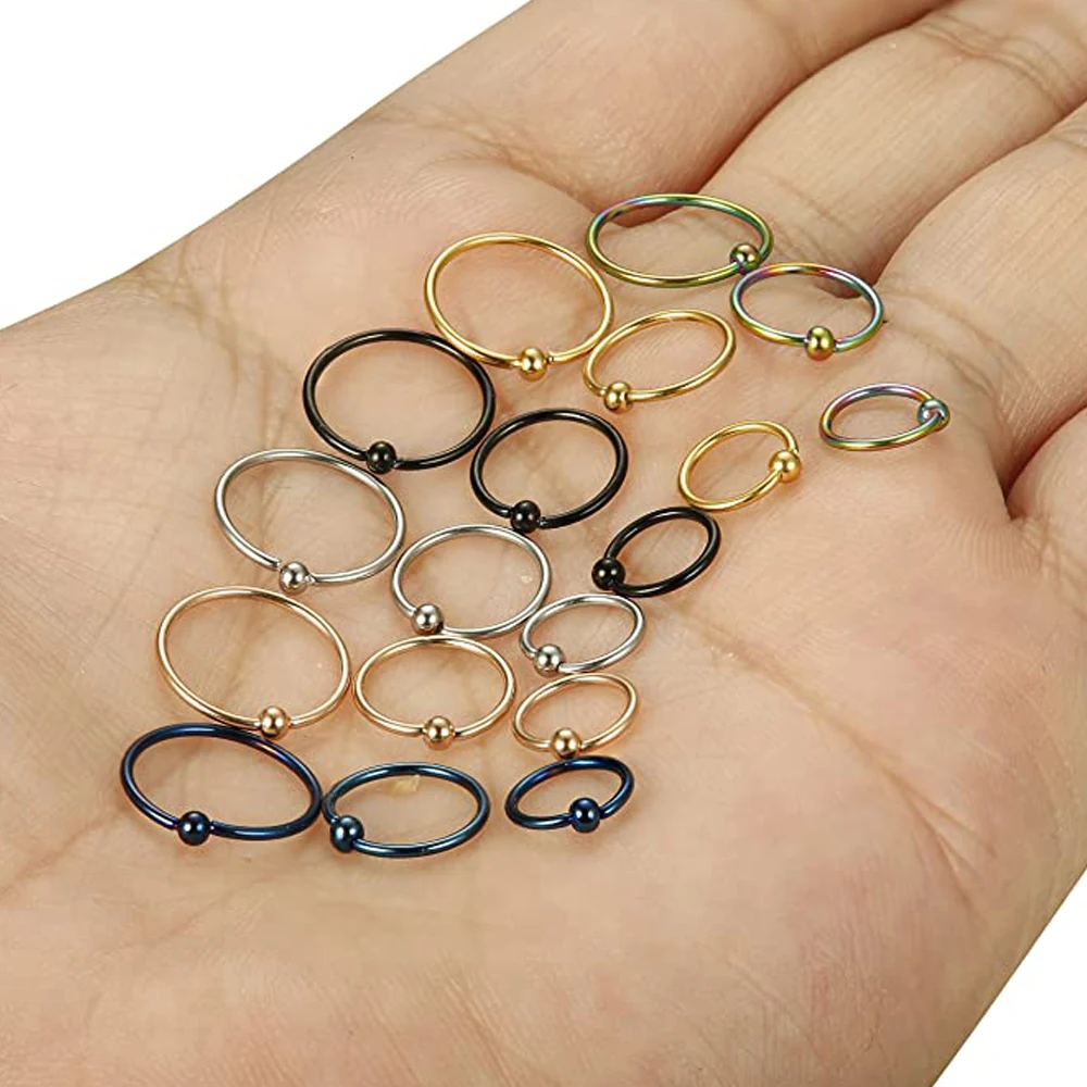 18 шт.упак. хирургические Сталь плененное кольцо уха обруч нос кольца петли уха Козелка Cartilalge пирсинг кольцо ювелирное изделие для тела, серьги