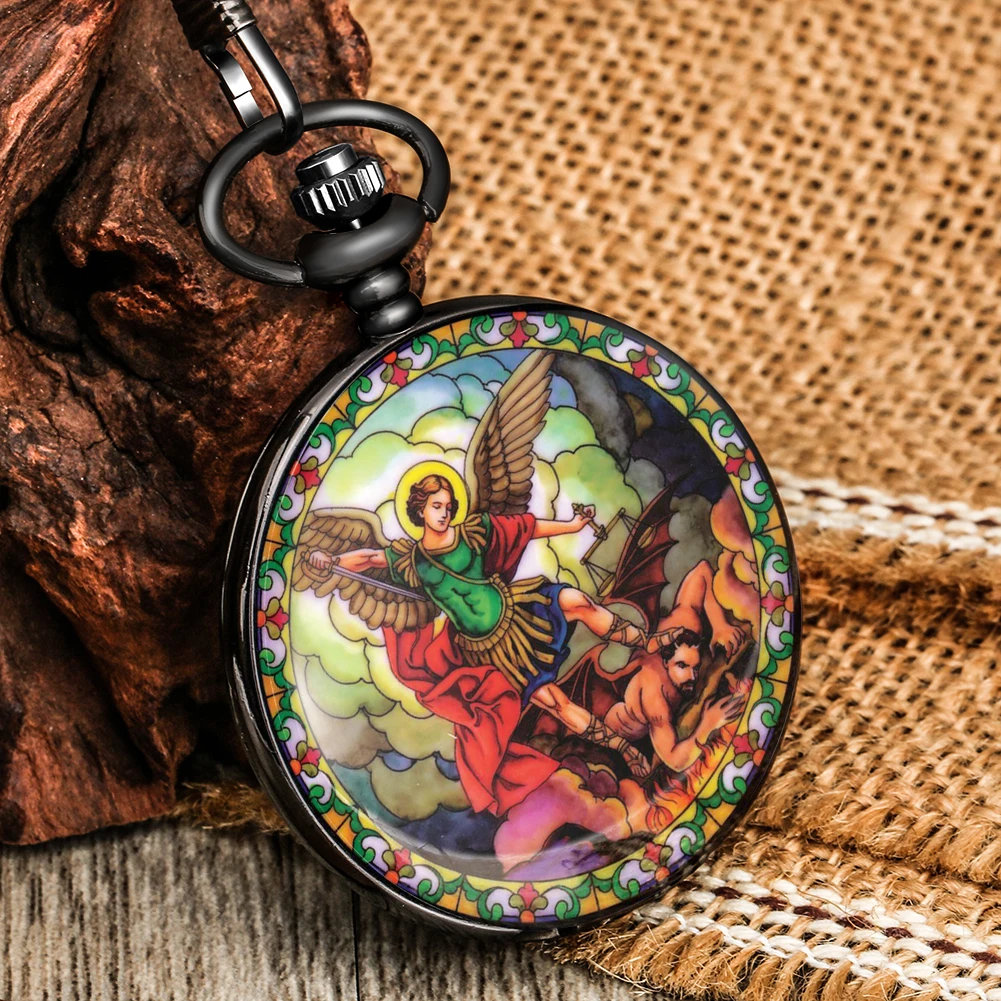 Ретро католические церкви кварцевые карманные часы цепочка мужской высокое качество Портативный FOB колье с кулоном с религиозной символикой кулон Изысканный Коллекционные