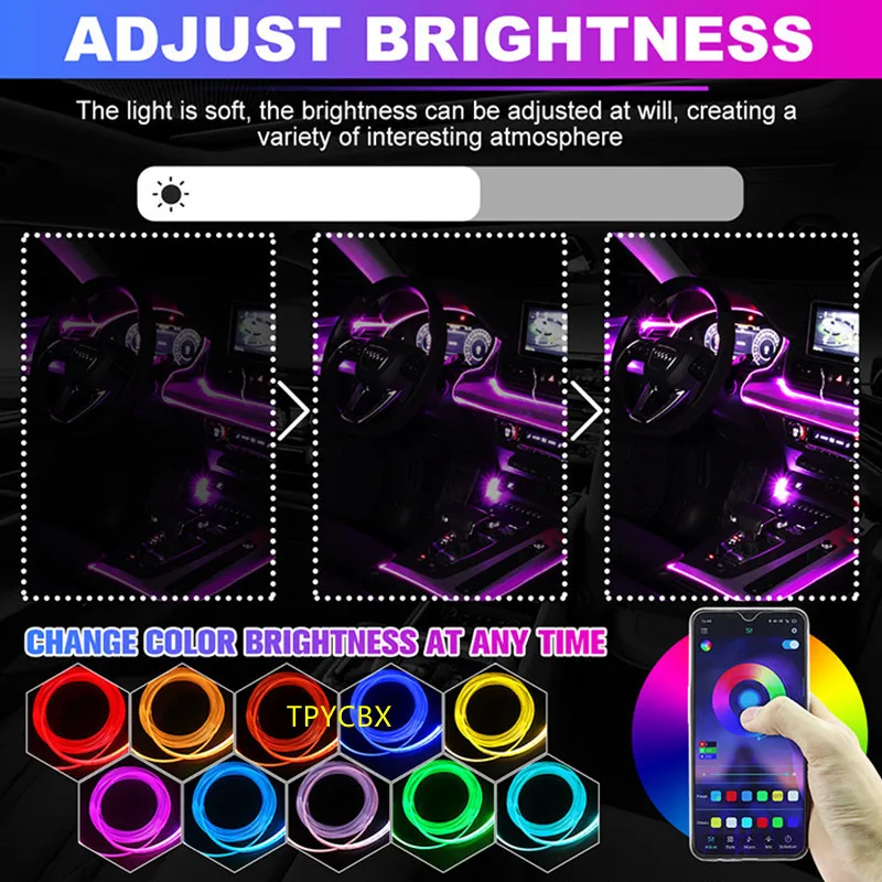 Светодиодсветильник лента RGB 10 в 1, декоративная лампа для салона, оптоволоконная лента с управлением через приложение, освещение для приборной панели, 3 Вт