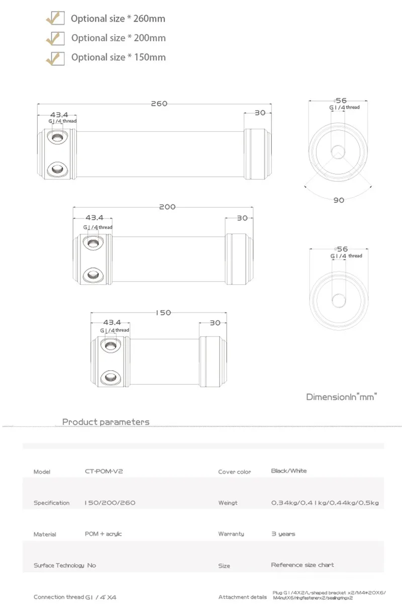Bykski водяного охлаждения, рез цилиндрический диаметр 50 мм POM, 150 мм 200 мм 260 мм, CT-POM-V2 водяного охлаждения резервуар