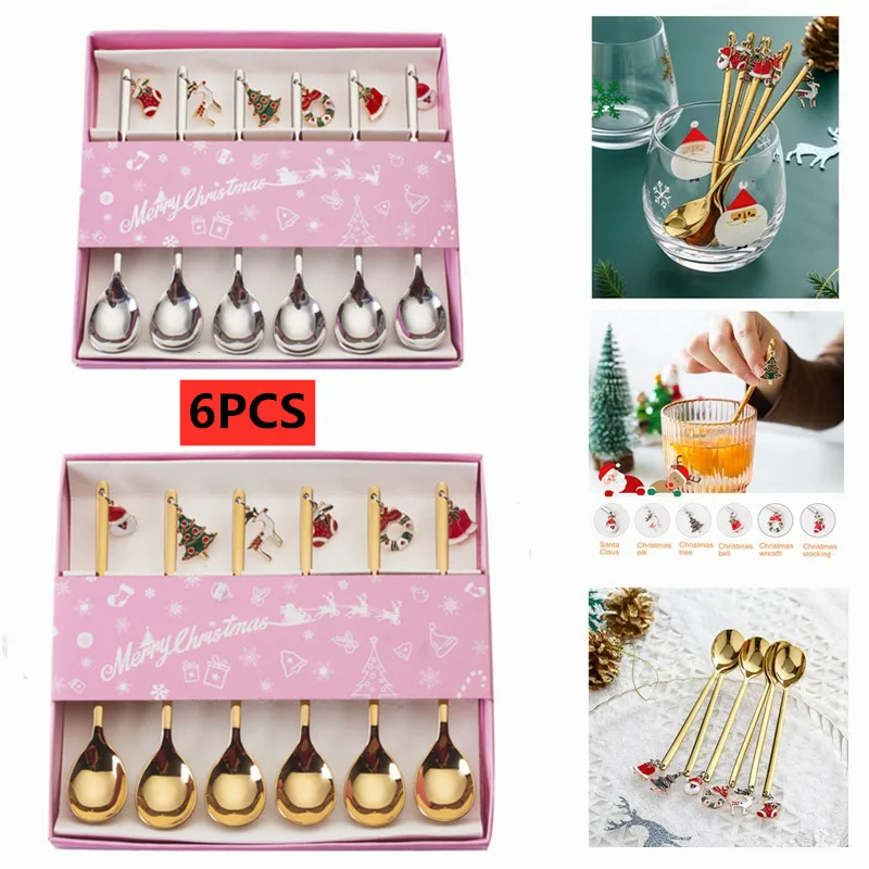 6 шт. Кофейная ложка, ложки для смешивания, ложки для перемешивания, ложка из нержавеющей стали, рождественский подарочный набор, набор украшений для праздничного стола, кофейная ложка