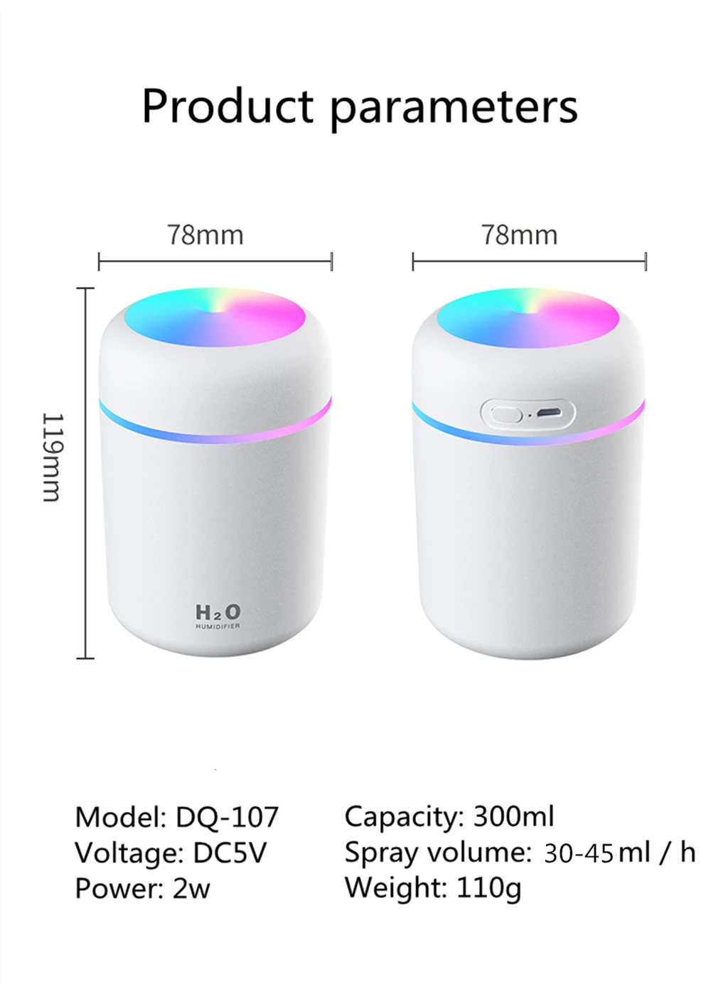mini air humidifier mist capacity30-45ml/h
