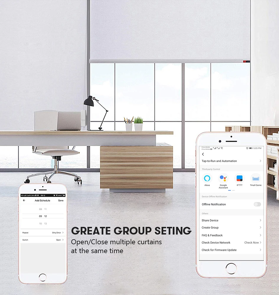 Простое управление через Alexa/Google/Wifi: Просто подключите его к Wi-Fi (Tuya), вы можете управлять им вверх или вниз через голос или приложение на свой мобильный телефон.