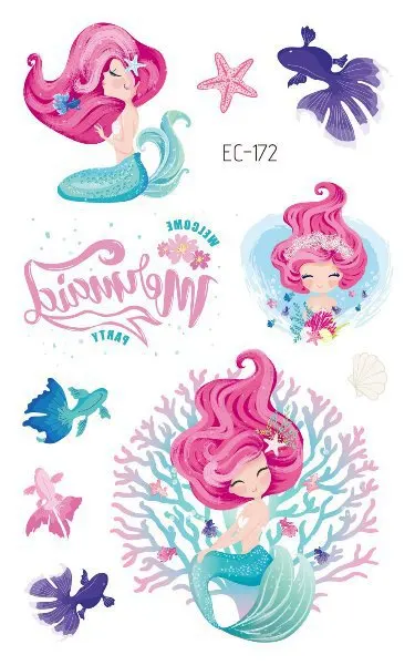 Наклейки маленькие Татуировка в виде русалки, украшение для детвечерние дня рождения, временная татуировка Русалочки, товары для вечевечерние