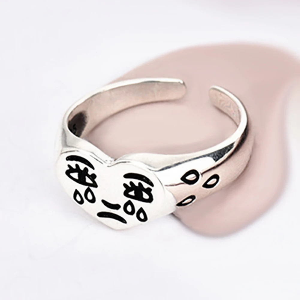 Винтажные серебряные кольца с счастливым улыбающимся лицом для женщ...