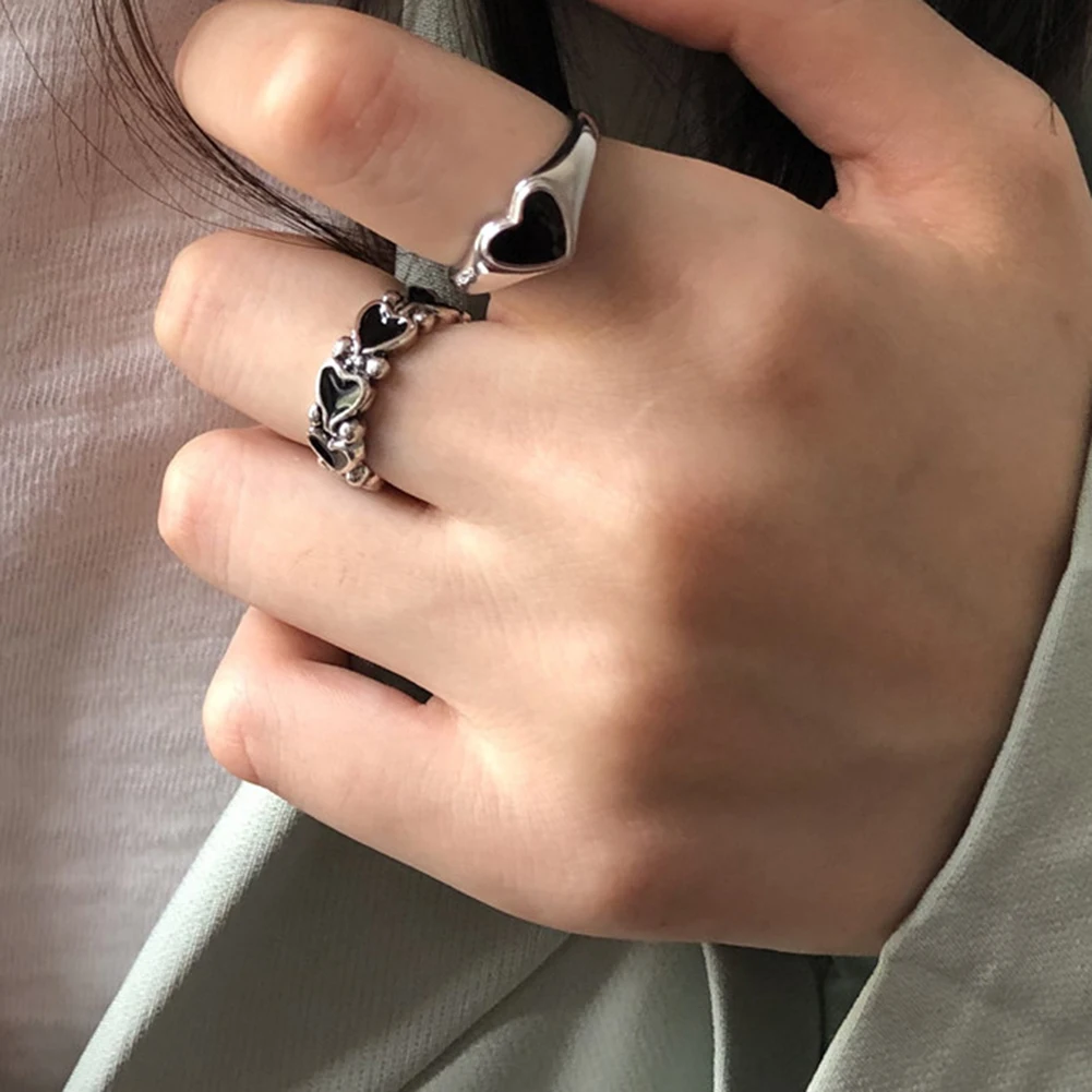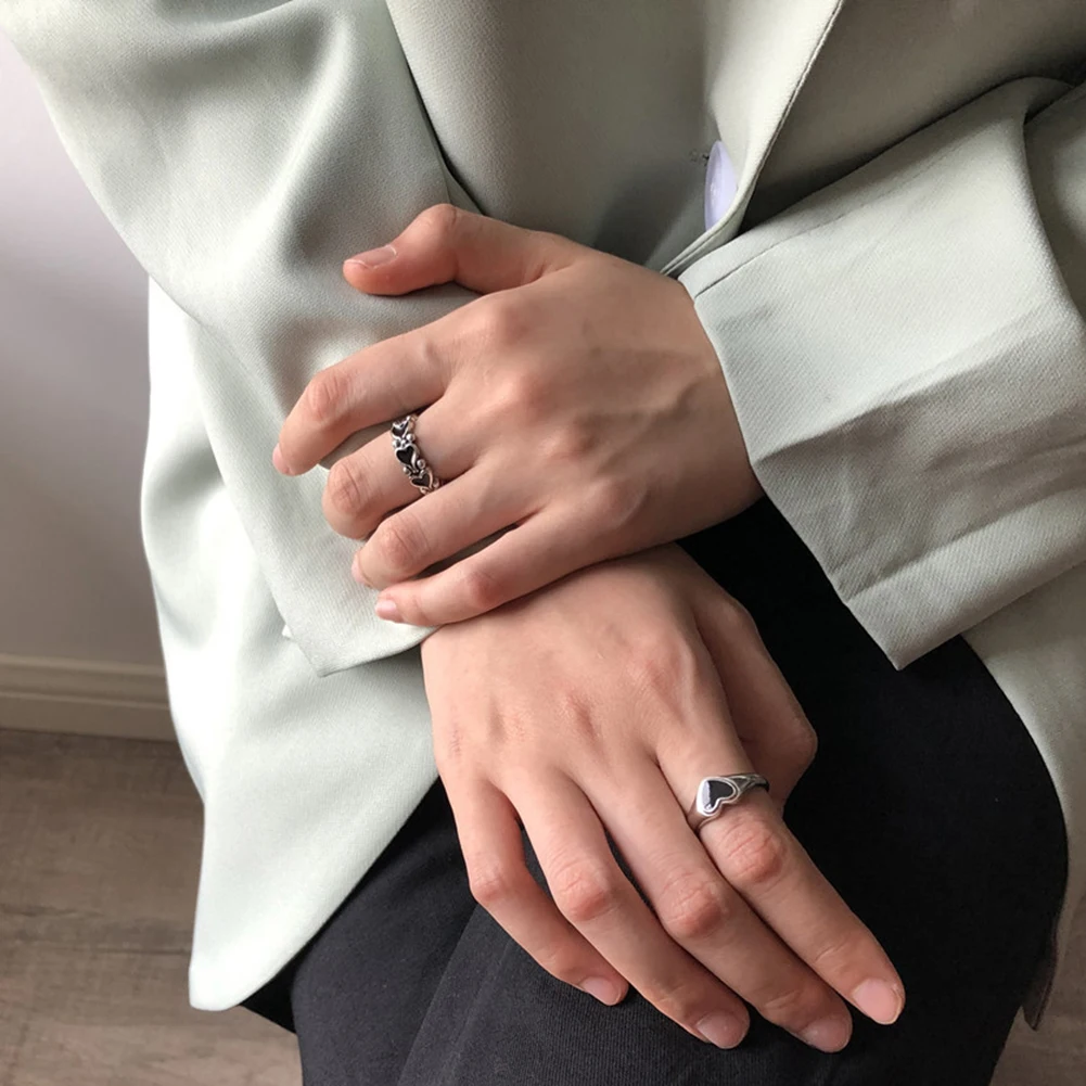 Женское Винтажное кольцо в виде сердца, открытое регулируемое кольцо с особым изменяемым размером