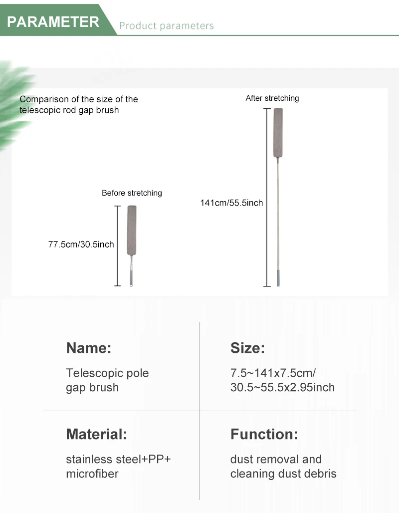 1. Ручка из нержавеющей стали, Удлиненная конструкция, прочная, гладкая, без заусенцев, удобная для хранения и более удобная для очистки.2. Головка из тонкого волокна легко моется и может адсорбировать пыль и волосы без царапин.Ручная щетка с длинной ручкой и очистите ее от каждого углового зазора.3. Удлиненная ручка может легко очистить высокое место.4. Хвостовое подвесное отверстие, которое можно повесить после использования, экономя пространство для хранения.5. Съемная головка кисти, которую легко сохранить.6. Можно использовать различные сценарные приложения, такие как дно кровати, поверхность стены, верхняя часть кабины.7. Только напольный коврик, другие демонстрационные аксессуары на картинке не включены.