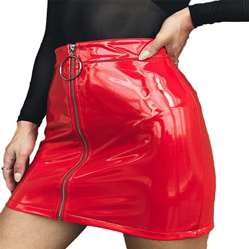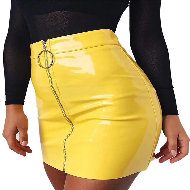 Женская модная юбка-карандаш, базовая эластичная однотонная облегающая юбка из искусственной кожи, короткая Универсальная юбка-карандаш с завышенной талией и круглым вырезом на молнии