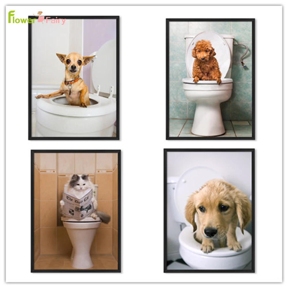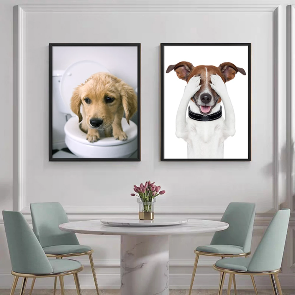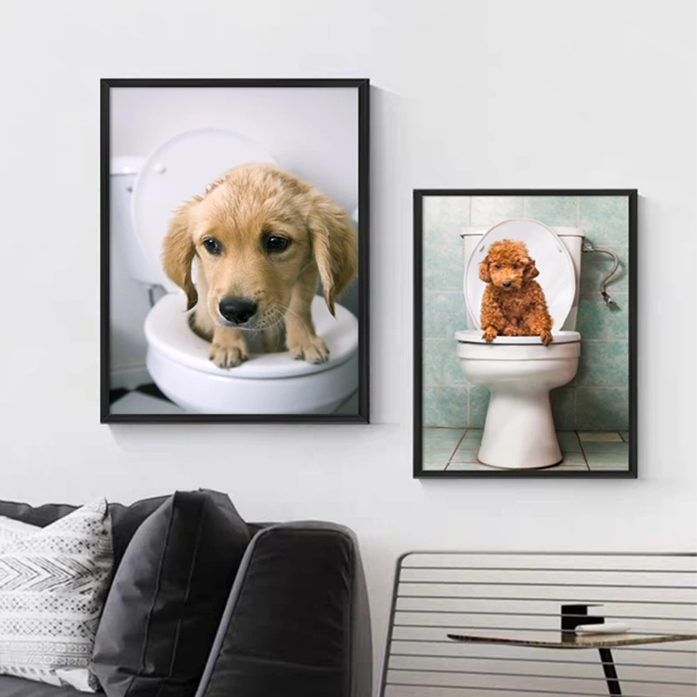 Креативный персонализированный настенный постер в виде собаки в туалете для домашних животных, Картина на холсте в скандинавском стиле, настенные картины для гостиной без рамки