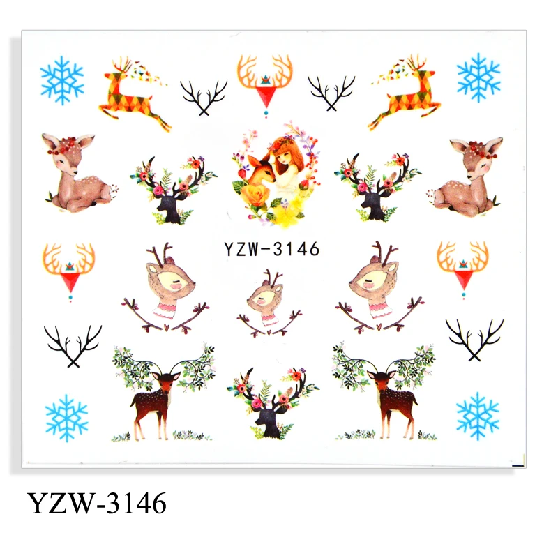 Рождественская наклейка для ногтей, с принтом Олень, дерево снежинк...