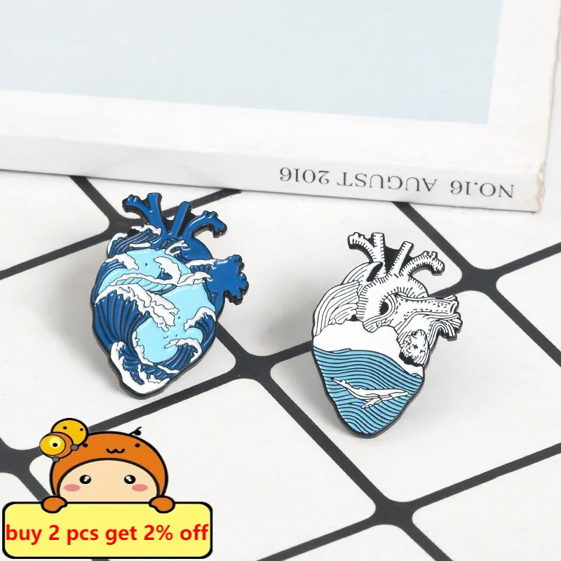 Эмалированные броши в виде сердца, океанская волновая повязка, розо...