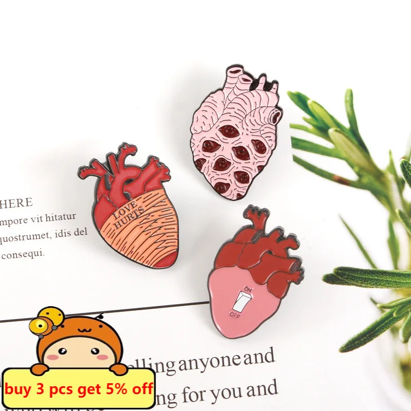 Брошь с эмалью в виде анатомического сердца, 24 вида, медицинская а...
