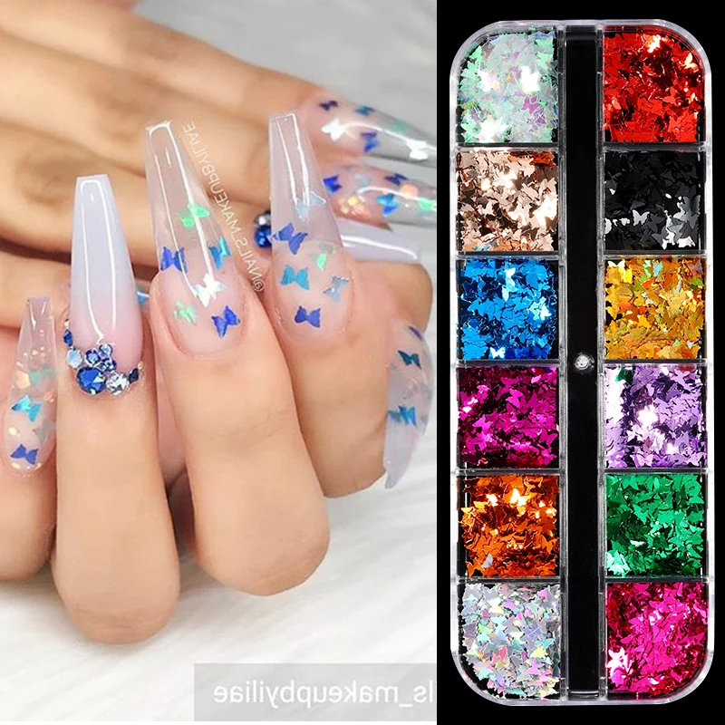Зеркальные Блестки для ногтей в виде бабочки, пайетки смешанных цве...