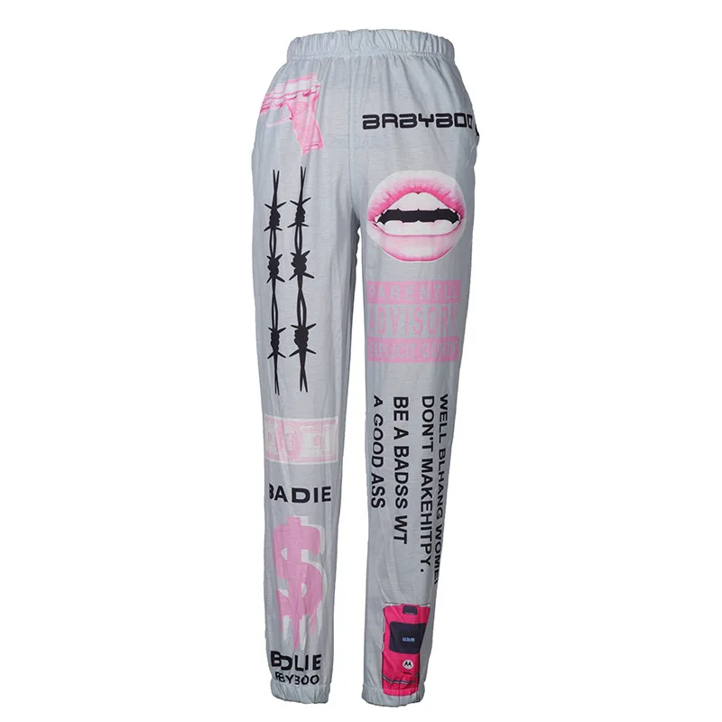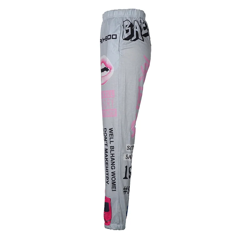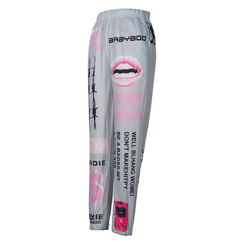 Новинка весны 2021, женские шаровары для отдыха с мультяшным принтом, модные эластичные узкие брюки с высокой талией