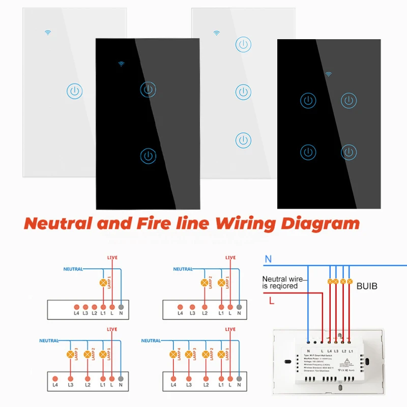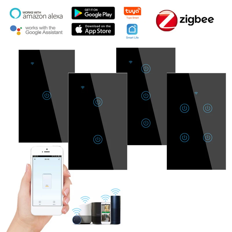 Нам Smart Wifi сенсорный переключатель нулевой провод требуется Кнопка таймер переключатель умный дом пульт дистанционного управления 1234 Gang светильник переключатель Поддержка Alexa приложение Tuya