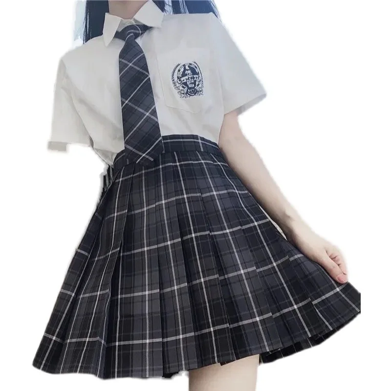 Новинка лета 2021, униформа школьницы, белая рубашка и плиссированная юбка в клетку, японская кавайная юбка с высокой талией, комплект униформы Y2k для женщин