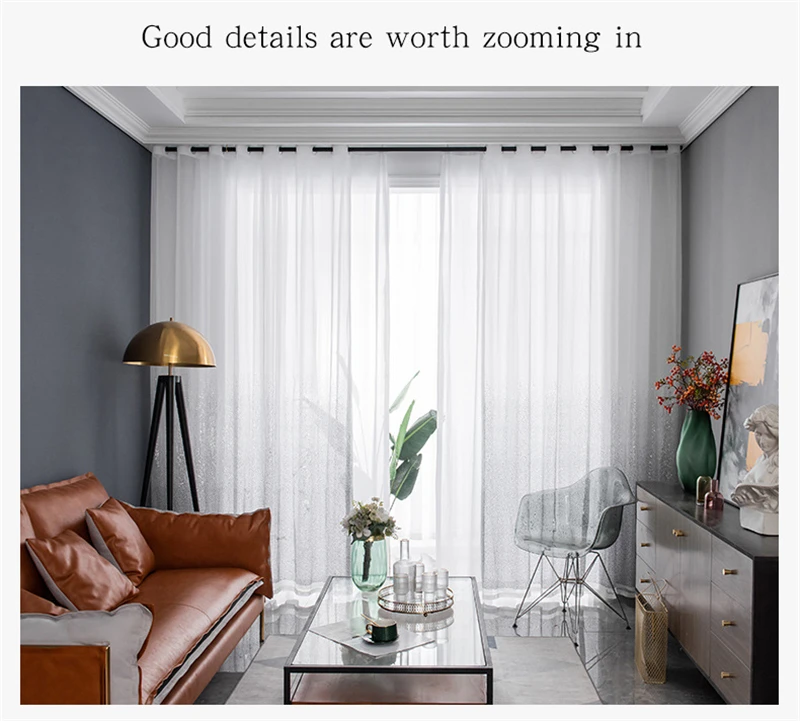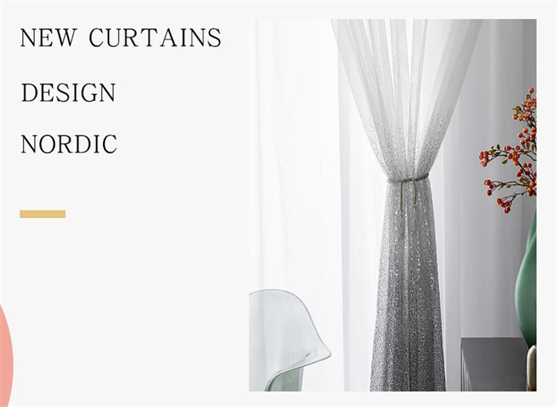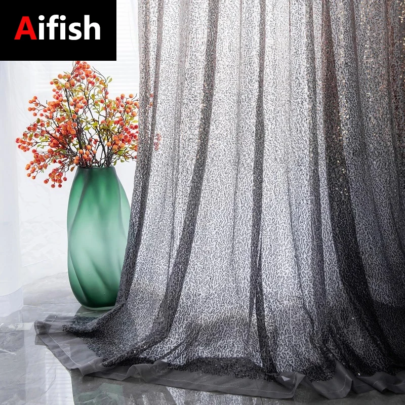 Шторы с градиентной вышивкой и блестками, для гостиной, спальни