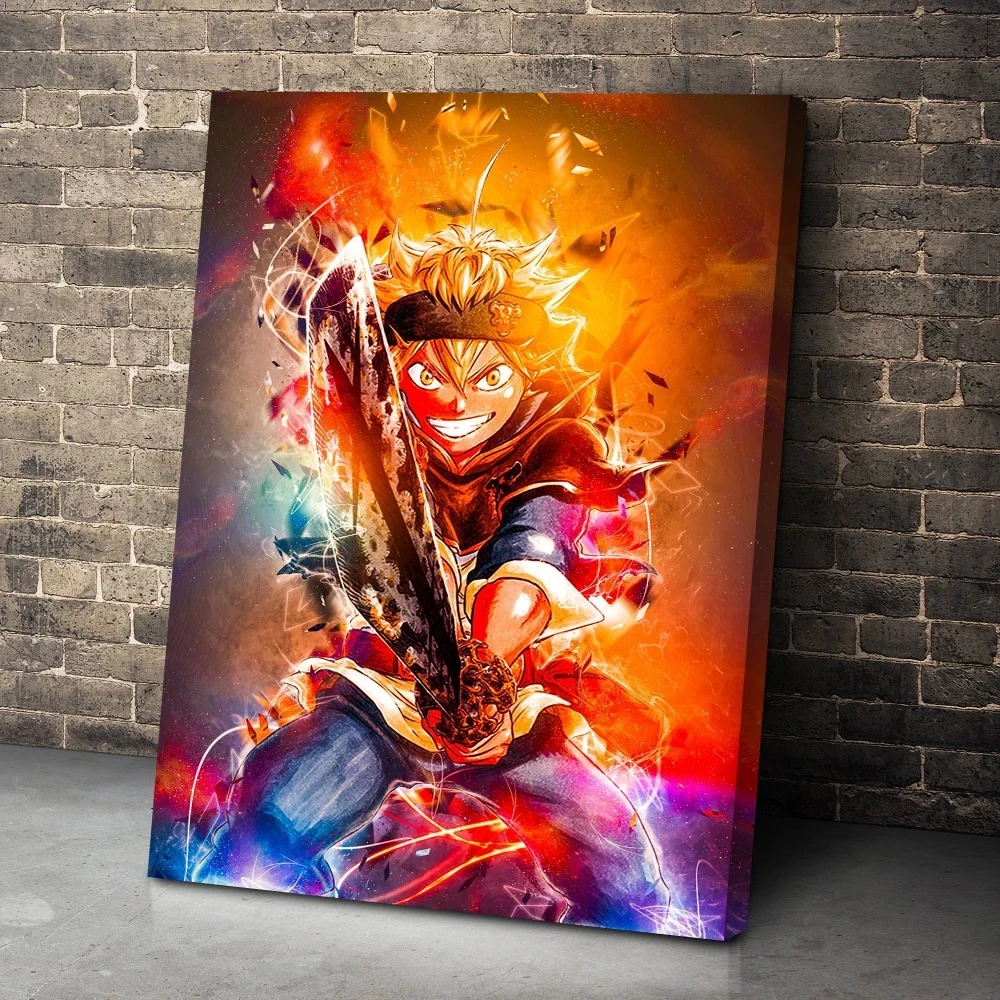 Домашнее украшение, холст с изображением черного клевера, Hd-принты, аниме, Темный Меч, огненные картины, настенное искусство, модульный постер для кровати
