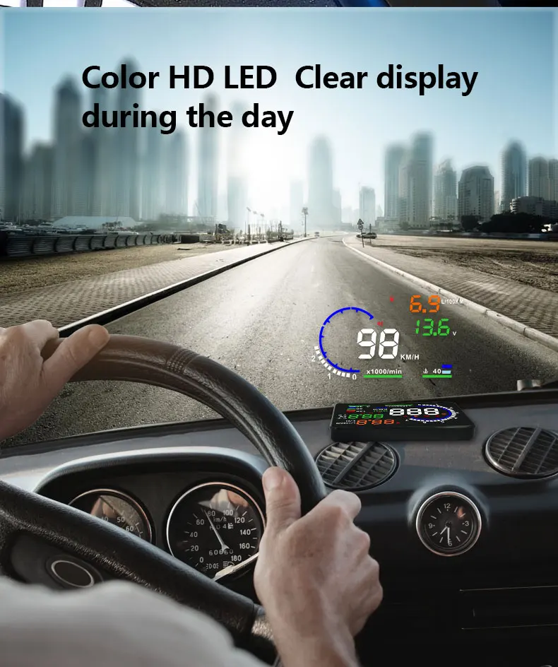 Цифровой ЖК-проектор для лобового стекла автомобиля AIXZ, диагональ 5,8 дюймов, предупреждение о превышении скорости, HUD, OBD2