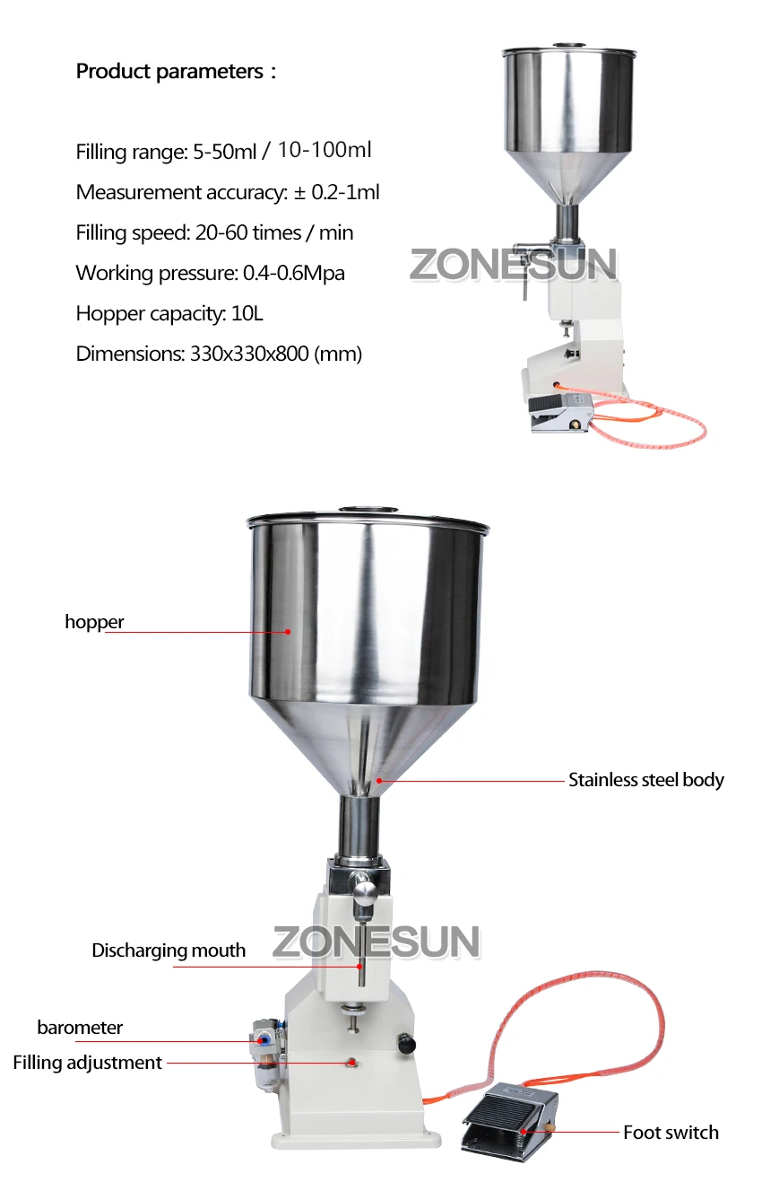 【Эффективное пневматическое наполнение 】-машина для наполнения жидкостью и пастой управляется пневматической мощностью, что дает вам эффективное и точное наполнение.