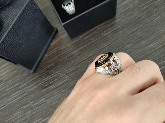 Кольцо из чистого серебра 925 пробы с натуральным камнем для мужчин...