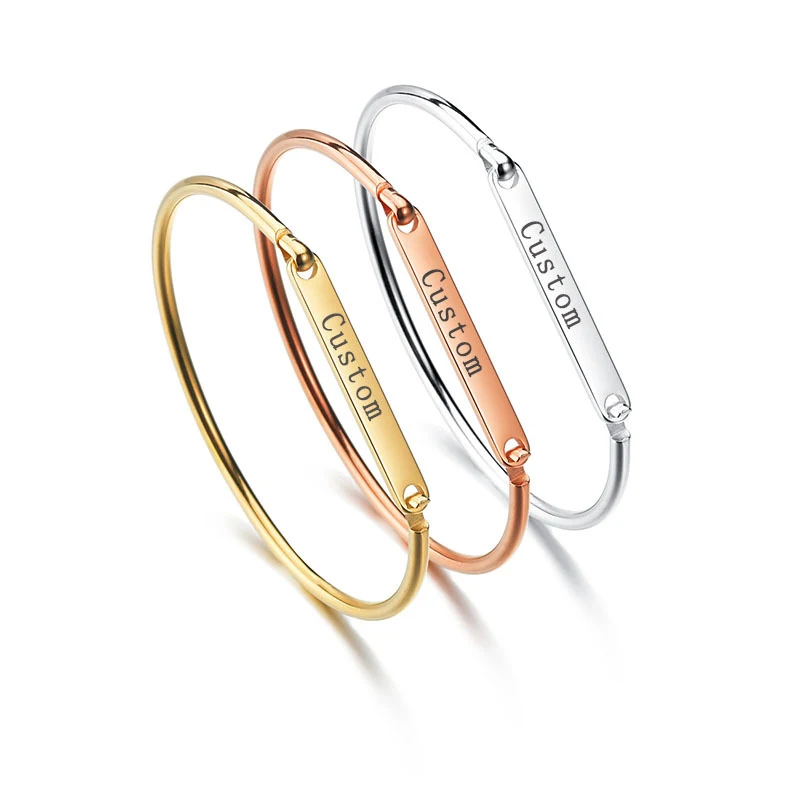 Индивидуальные персонализированные браслеты, украшенные вручную, гравировка имени, манжета, браслет из нержавеющей стали для женщин, простой браслет, подарок для нее