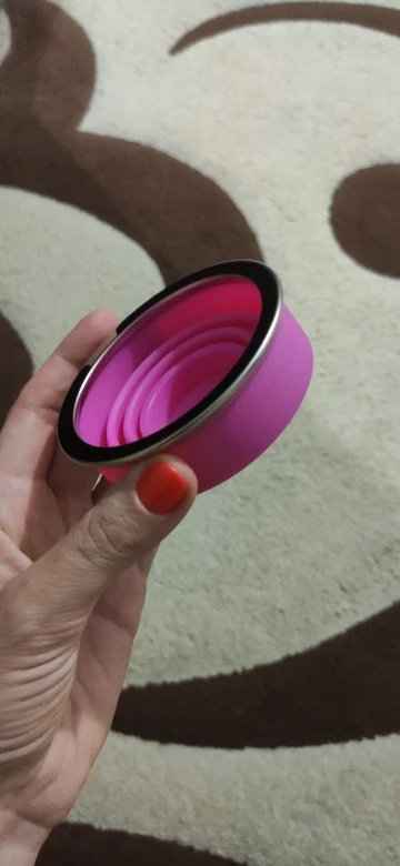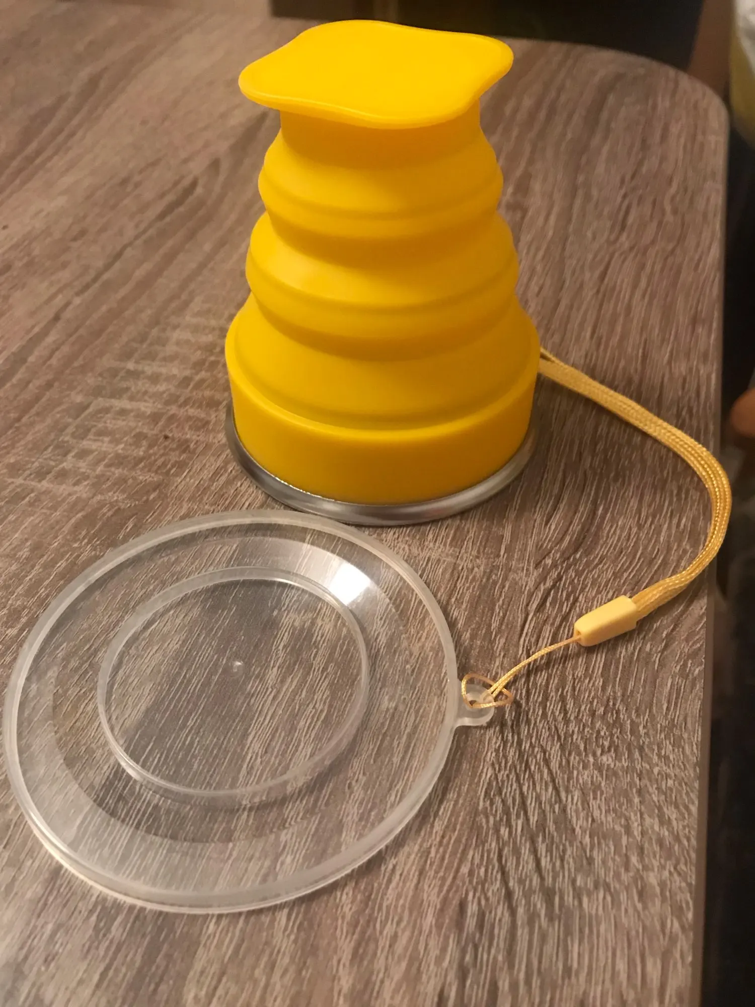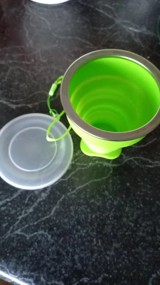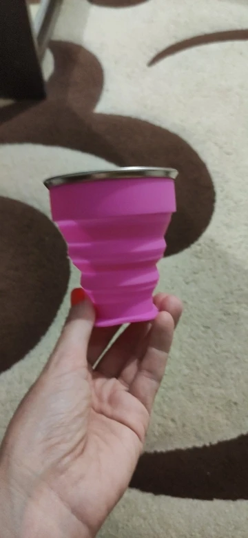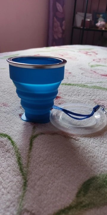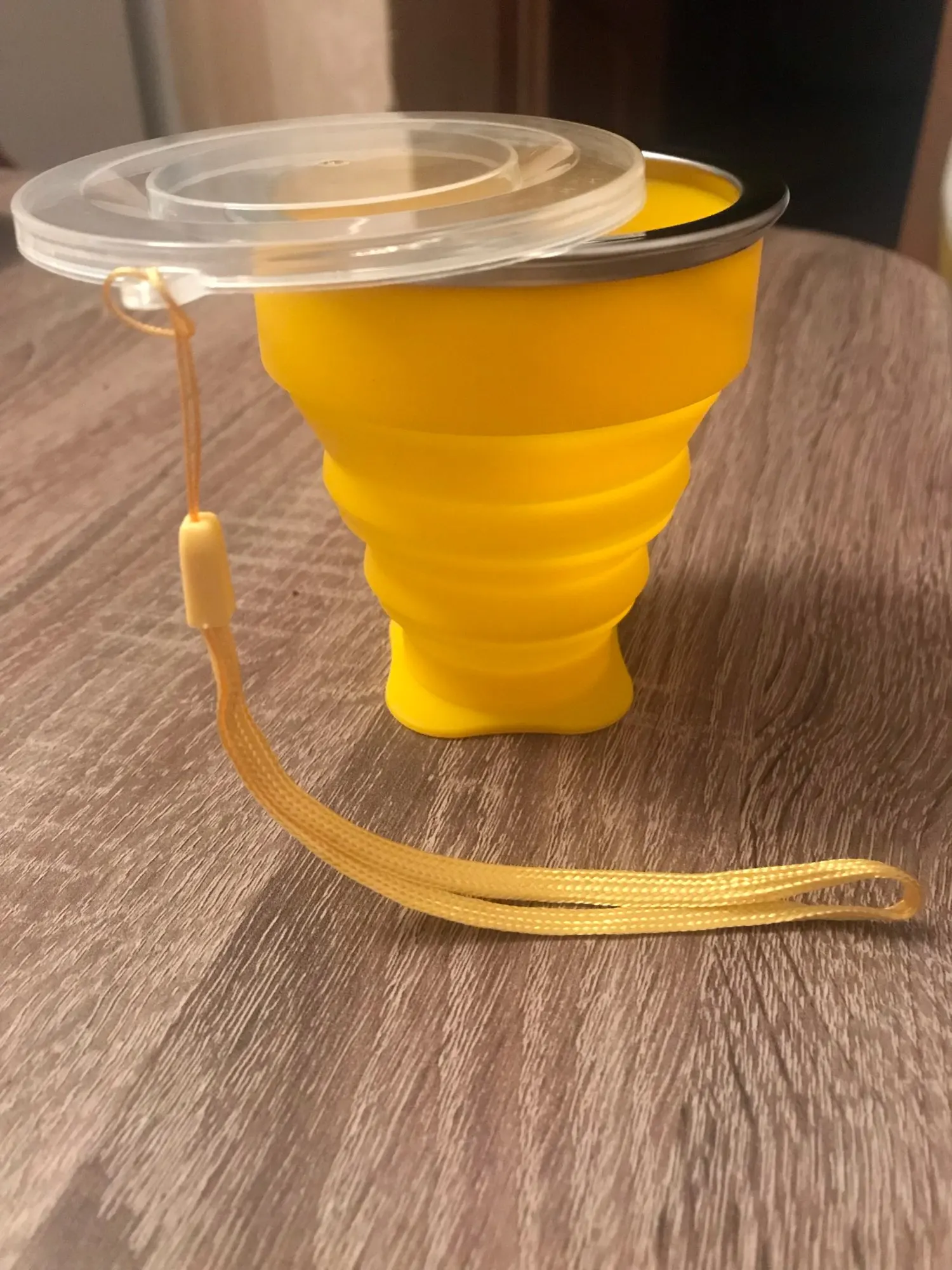 Хороший стаканчик, нормальный объём, у меня все дорожные стаканчики меньше объёмом, устойчивое дно, силикон мягкий, не должен быстро лопнуть (случилось у меня такое ну просто через несколько раз использования со складным стаканом, купленным у другого продавца), крышка закрывается плотно, но, думаю, с ней надо обходиться аккуратно, может треснуть. Стакан очень симпатичный, мне понравился, петелька на крышке, очень удобно.