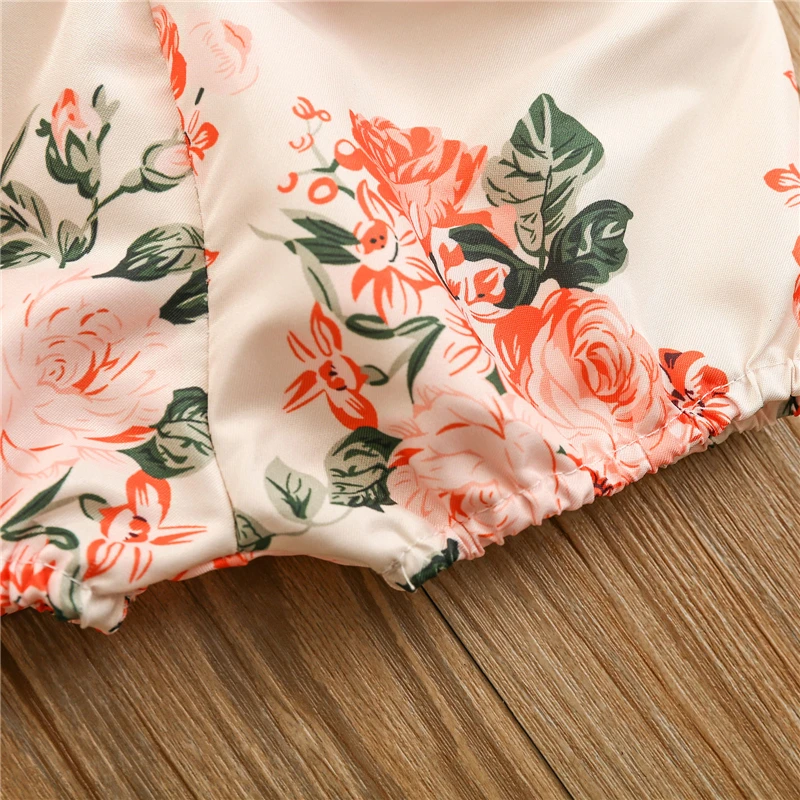 2021, летний комплект одежды для маленьких девочек, комбинезон в рубчик с короткими рукавами и оборками + шорты с цветочным принтом + повязка на голову, милый костюм одежды для девочек