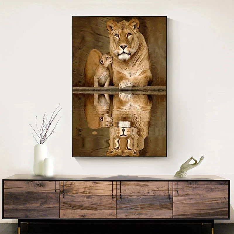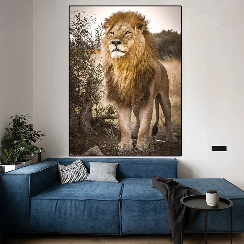 Лев на стене холст картина Плакаты и изображениями животных холст и...