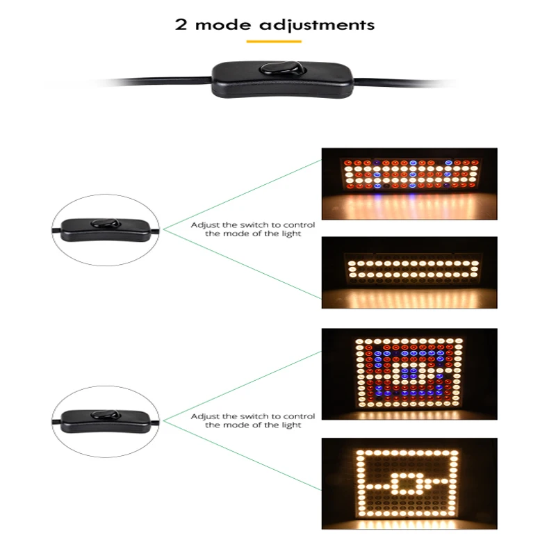 Обратите внимание: ИК, УФ-светодиоды выглядят тусклыми, это нормально, не волнуйтесь. Для энергосберегающего дизайна, 25 Вт потребляет только около 8 Вт, 45 Вт-14,5 Вт, намного лучше, чем та же Товар на рынке. Подходящее место: садоводство, Рассада/теплица, овощи/домашнее растение, световая добавка Полный спектр: 25 Вт 2835 Чип 75 светодиодов; 45 Вт 2835 Чип 144 светодиодов; СВЕТОДИОДНЫЕ Чипы: 25 Вт 75 светодиодов, Красный: 32, Синий: 7, теплый белый: 32, УФ: 2, ИК: 2 45 Вт 144 светодиодов, красный: 51, синий: 24, теплый белый: 63, УФ: 3, ИК: 3 Угол обзора светодиодов: 120 смешанный Рабочее широкое напряжение: можно использовать от 85 В до 265 В. Частота: 50/60 Гц; Сертификаты: CE, ROHS, FCC Советы по использованию:-Рекомендуемое Непрерывное время работы: 10-16 часов в день-только для использования в помещении, не водонепроницаемый. Рекомендуемый рост растения: 12-50 дюймов в зависимости от стадии роста.